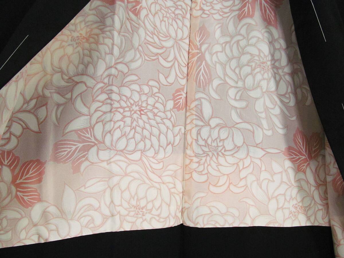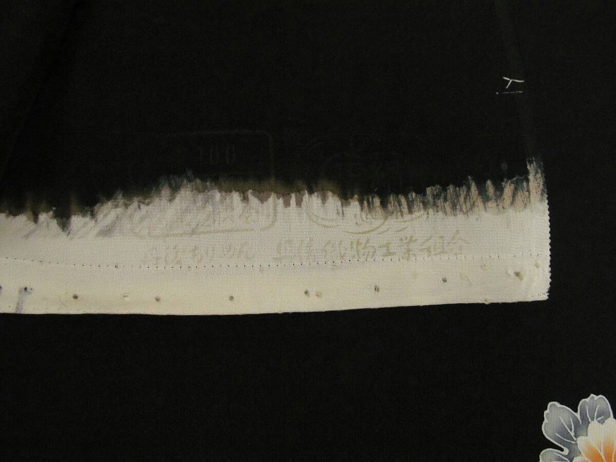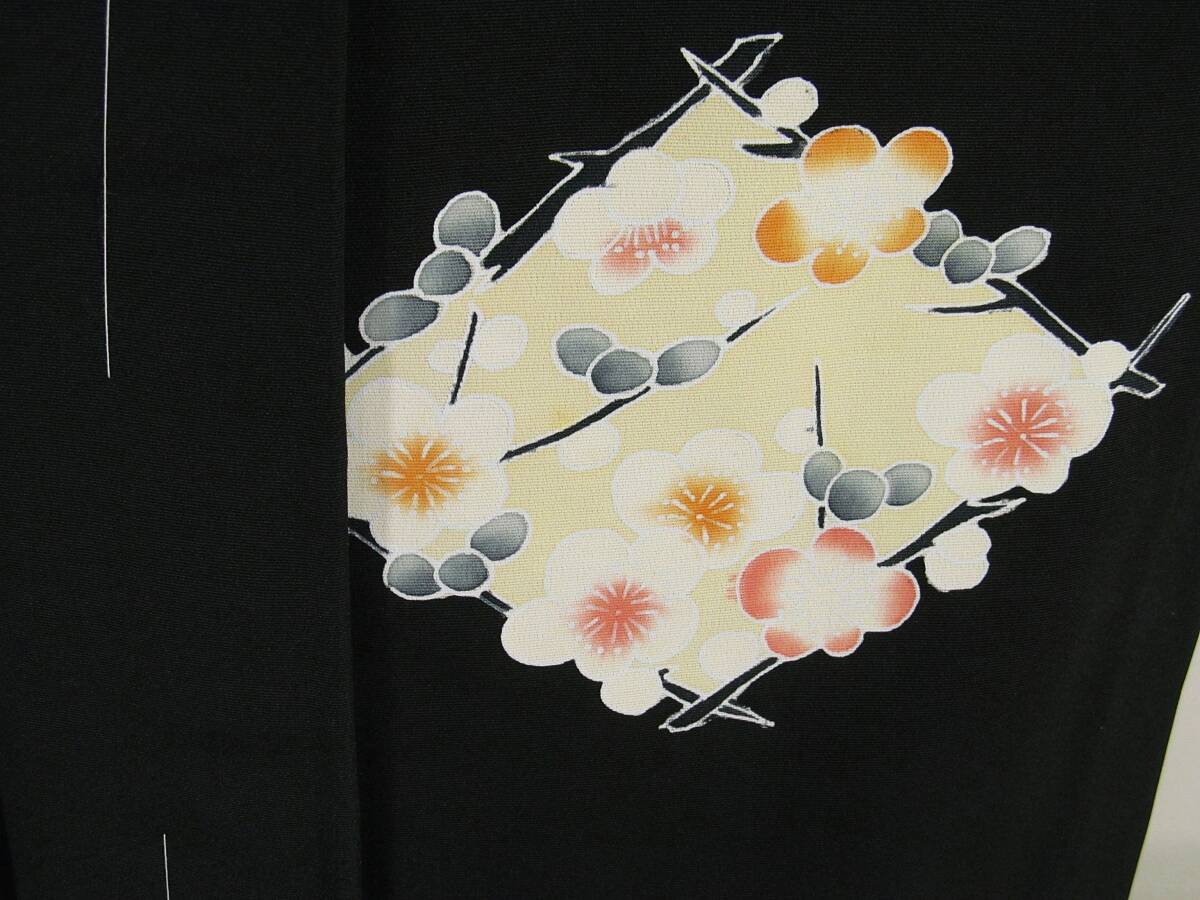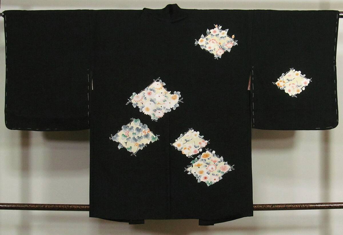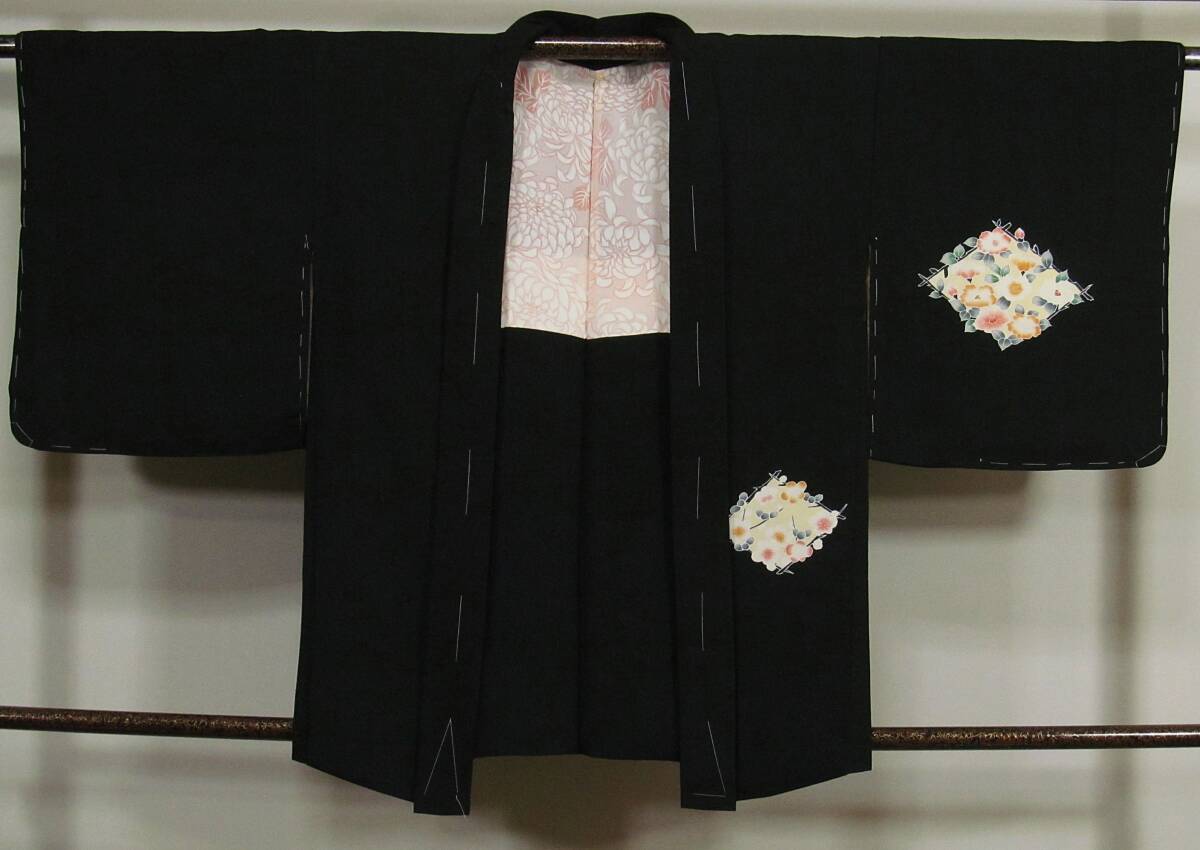の182 正絹 黒 絵羽織 花柄 丹後縮緬 身丈79cm