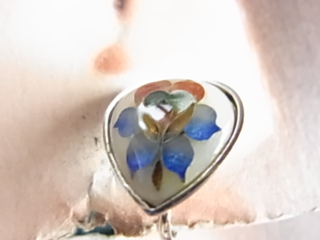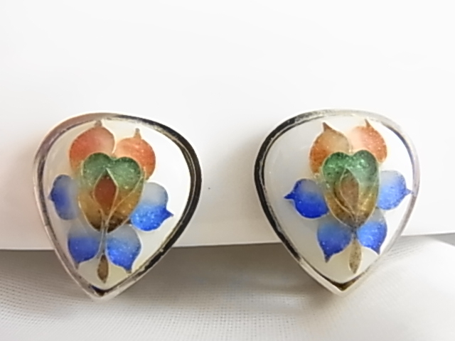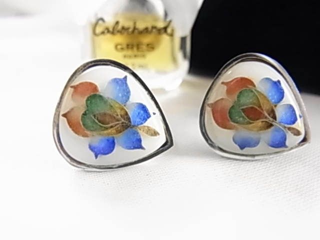 ビンテージ/ヴィンテージ 焼き物系 白色ベースに柄模様 お花 フラワー 異国感 昭和レトロの古い素敵なイヤリング■