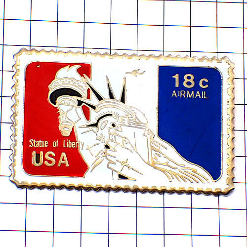 | "ピンバッジ・自由の女神アメリカNYニューヨーク米国/飛行機USA郵便切手型 STATUE-OF-LIBERTY NEWYORK AIR-MAIL"の商品説明 | |