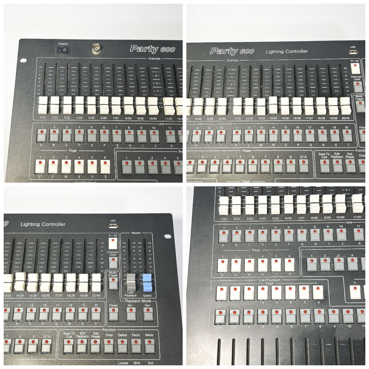 1993年に設立されたDMX照明制御製品を専門とするメーカー『CODE(コード)』より、ムービングライトやLED スポット、ハロゲンスポット等の様々な機器が混在した制御をシンプルかつスピーディにこなすライティングコンソール『PARTY 600』が入荷致しました! 【ジャンク理由】 ●データクリアをし、通電、ボタン操作のみ確認しましたが、全ての機能、外部機器との接続等は不明です。 |