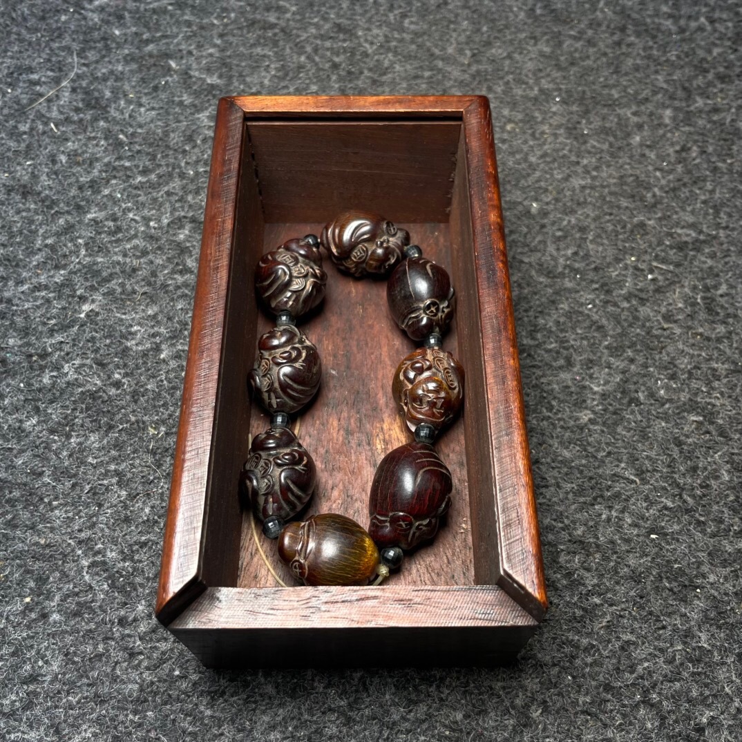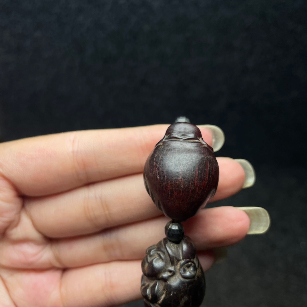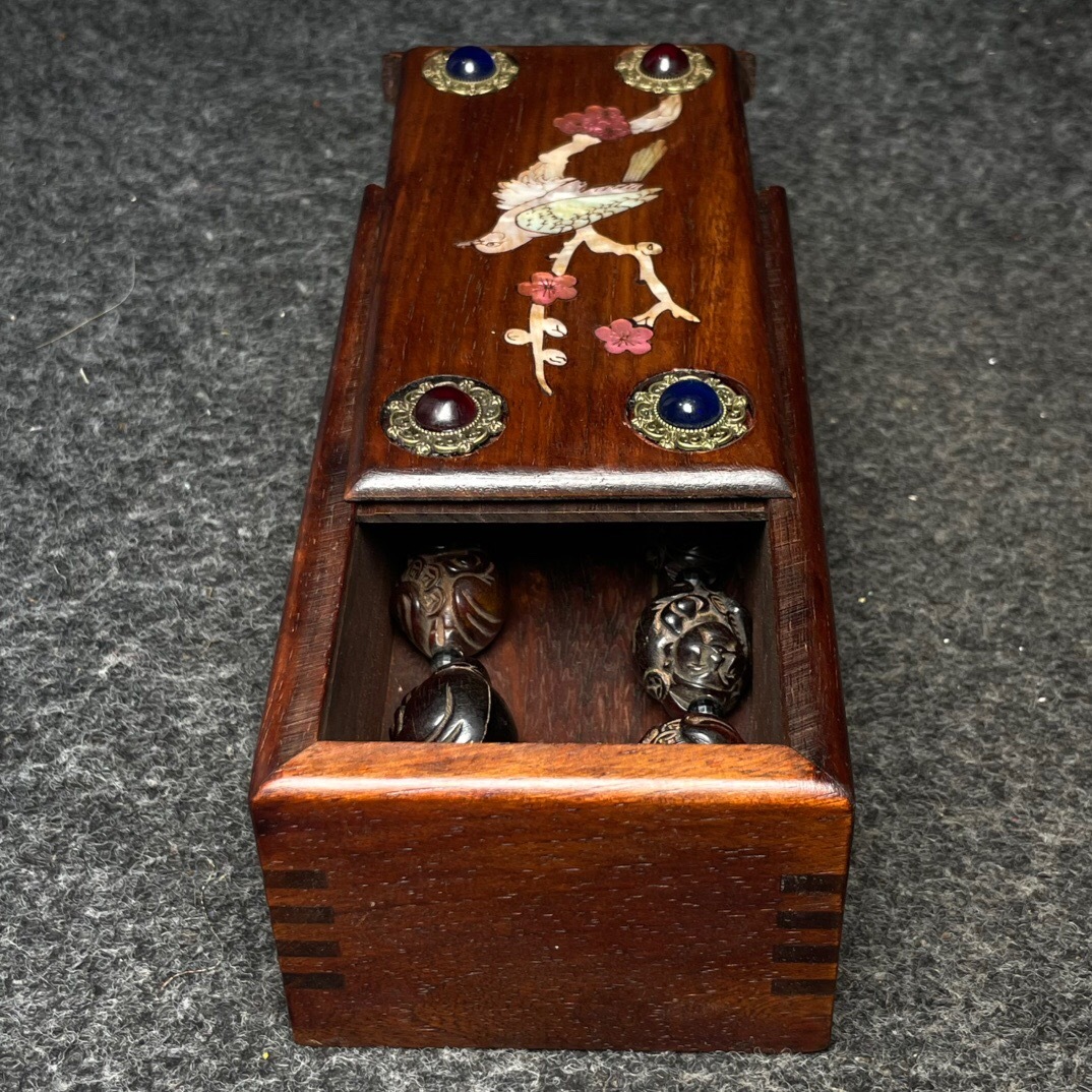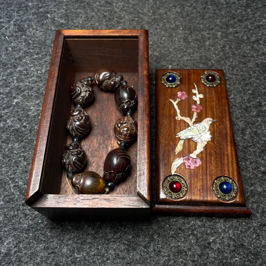 ▽鴻▽ 角材細密彫 手串 寶石嵌 箱付 根付 裝身具 古賞物 古董品 時代物 稀少珍品 中国古玩 中国古美術