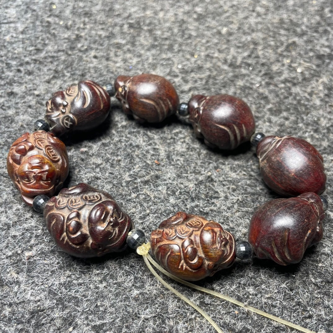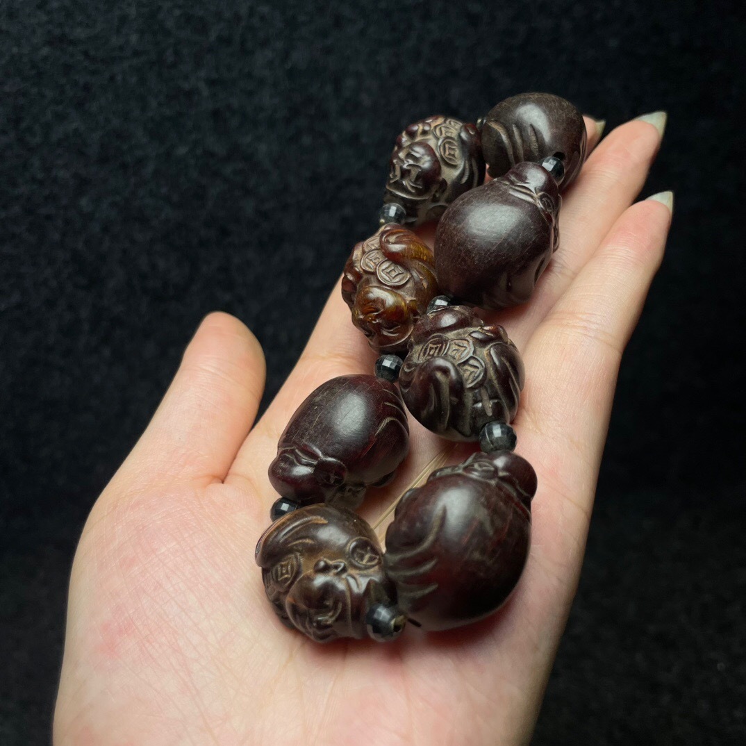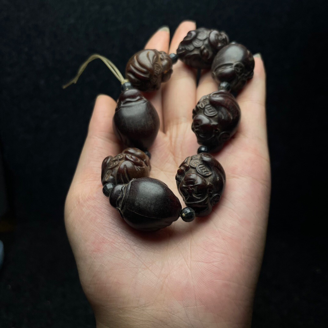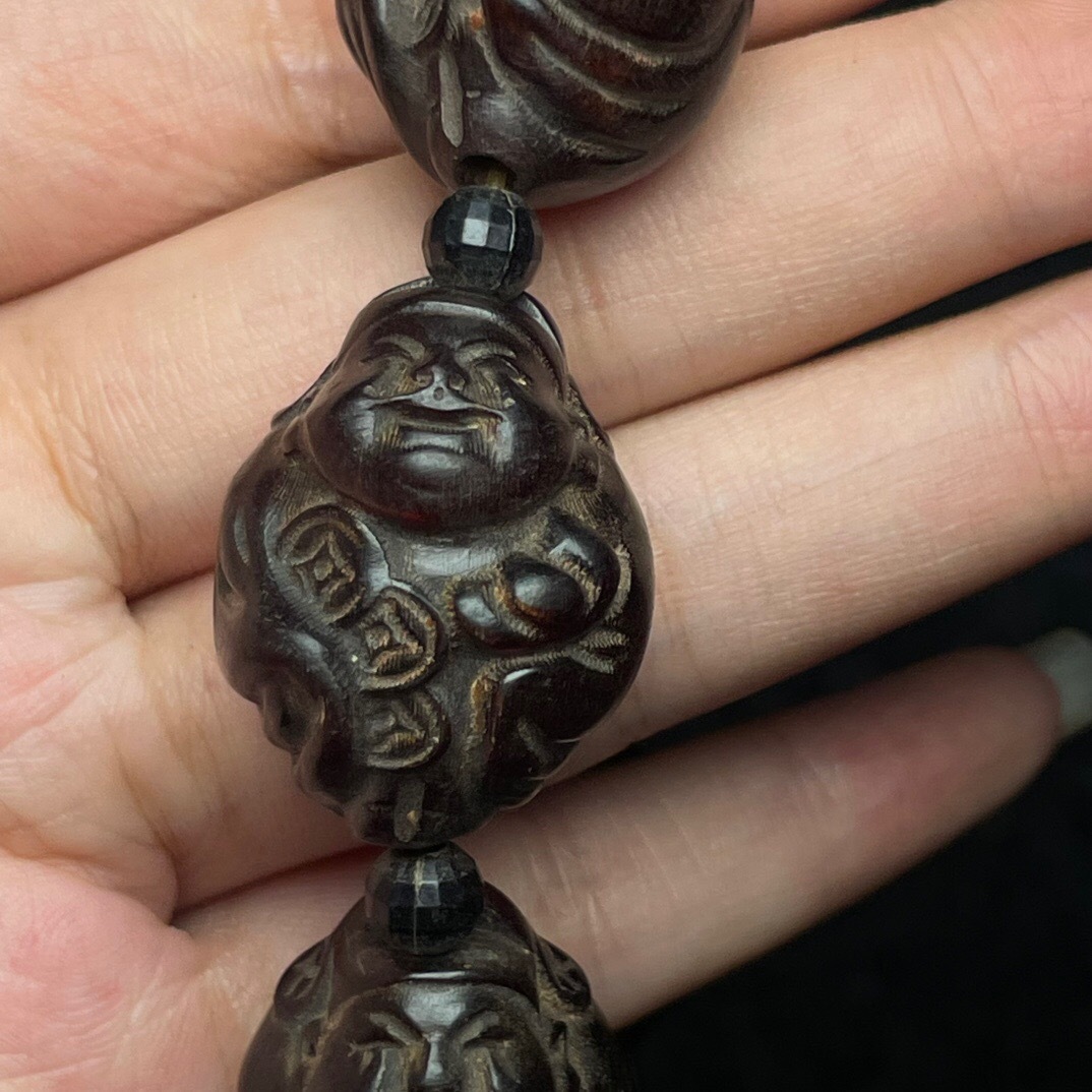 ▽鴻▽ 角材細密彫 手串 寶石嵌 箱付 根付 裝身具 古賞物 古董品 時代物 稀少珍品 中国古玩 中国古美術
