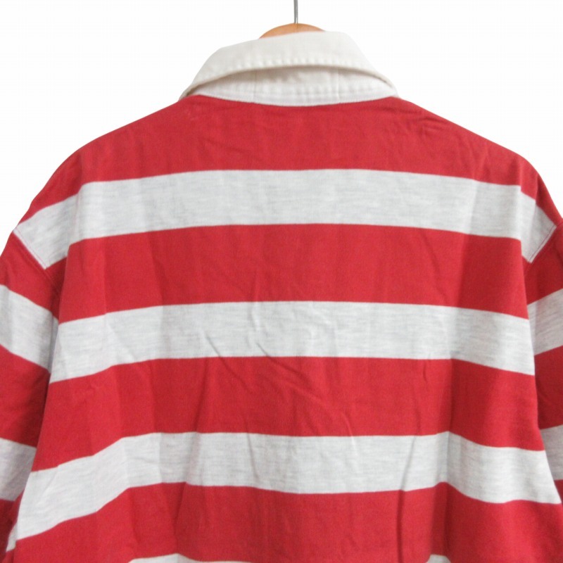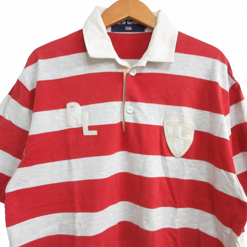 ポロスポーツ POLO SPORT ラガーシャツ ポロシャツ 半袖 エンブレム ボーダー 赤 白 レッド ホワイト M IBO76 メンズ