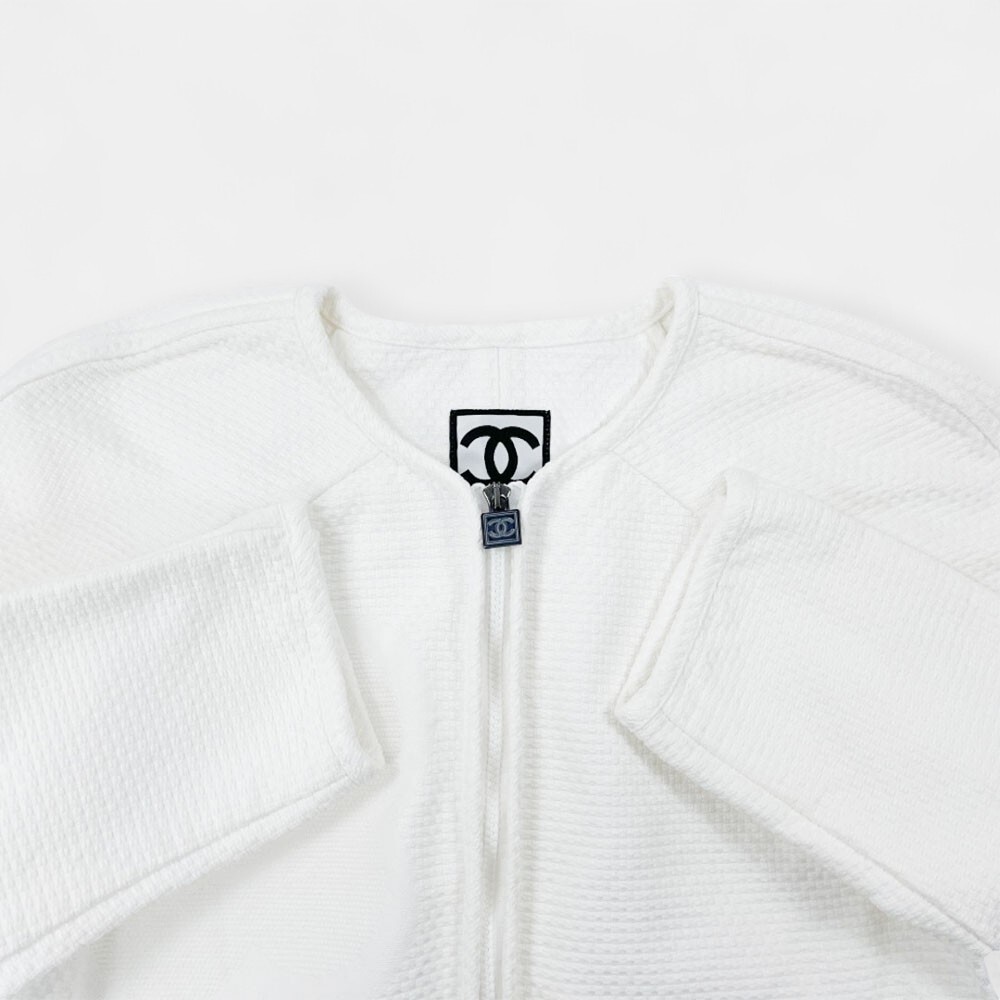 CHANEL シャネル / カメリア ココマーク ノーカラー コットン ジャケット / 09P P3525 V25127 / 白 ホワイト / レディース アウター