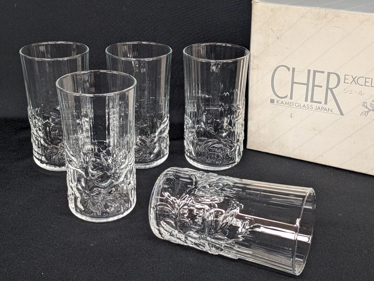 gg564■【デッドストック】CHER/シェール KAMEI GLASS 5客セット グラス ガラスコップ ギフトセット/80