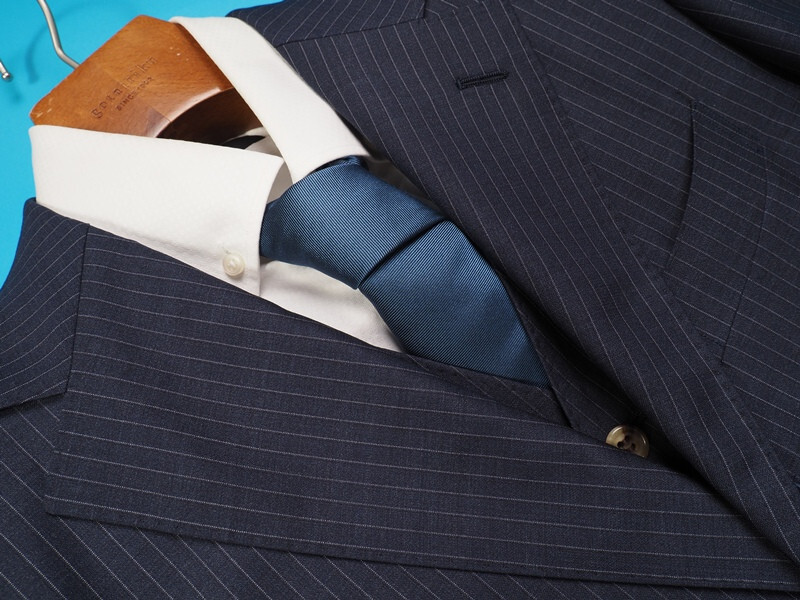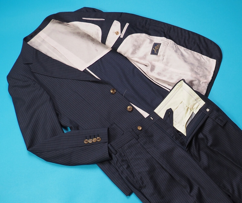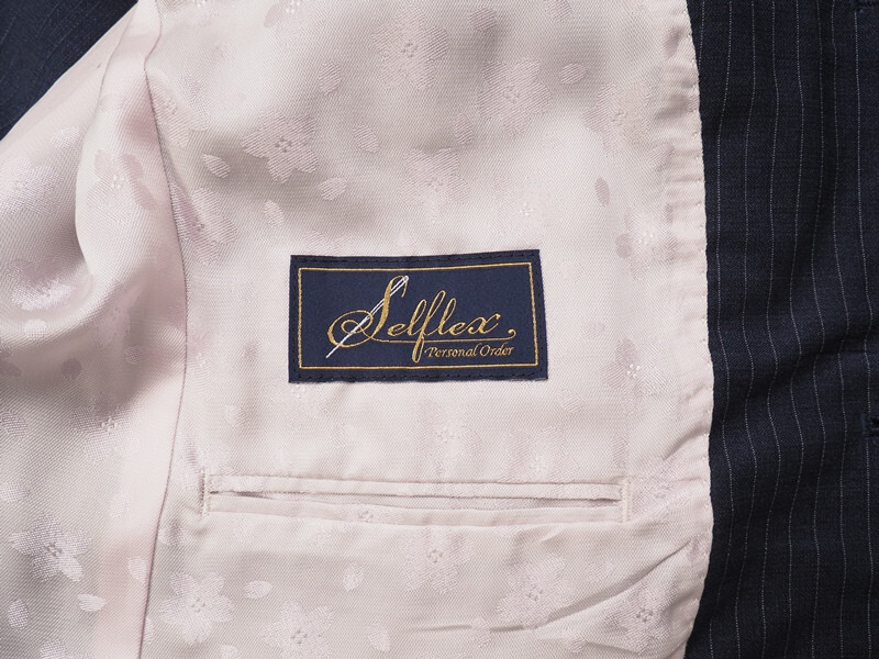 伊勢丹などの百貨店展開の『Selflex』ブランドのオーダースーツです。お台場仕立て、水牛釦、本切羽、AMFステッチ、毛芯を用いた縫製など、既製品のブランドスーツではここまで仕立てにこだわったスーツは手に入りません。