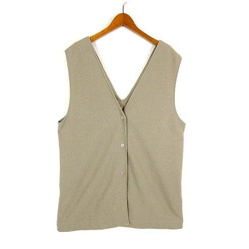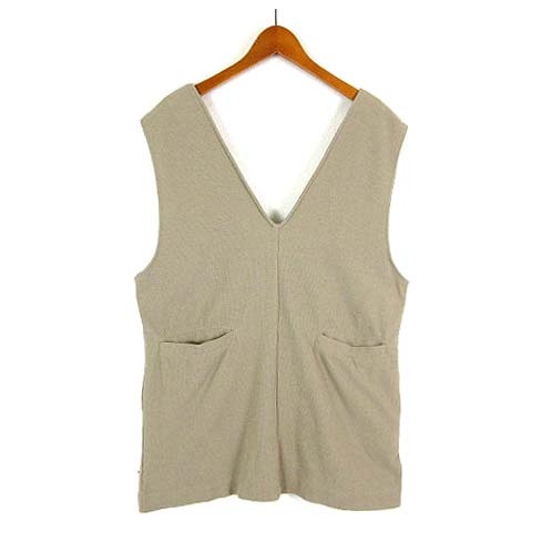 レプシィム ローリーズファーム LEPSIM LOWRYS FARM ベスト ジレ 前後2Way ワッフル Vネック コットン ストレッチ L ベージュ レディース