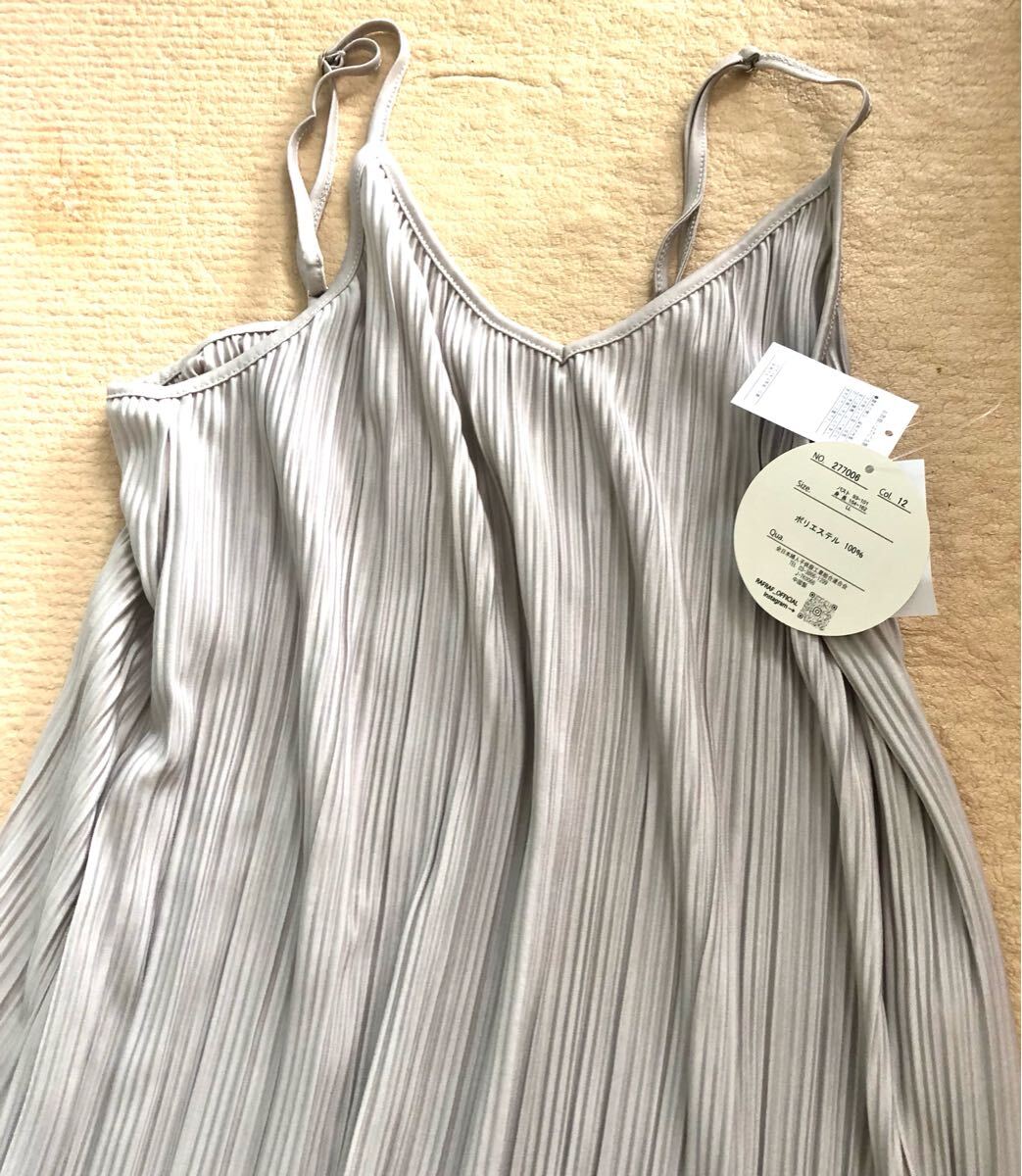 新品 プリーツキャミワンピース ベージュ LLサイズ 半袖Tシャツと合わせて ロングワンピ キャミワンピ マキシワンピ 重ね着 海辺リゾート
