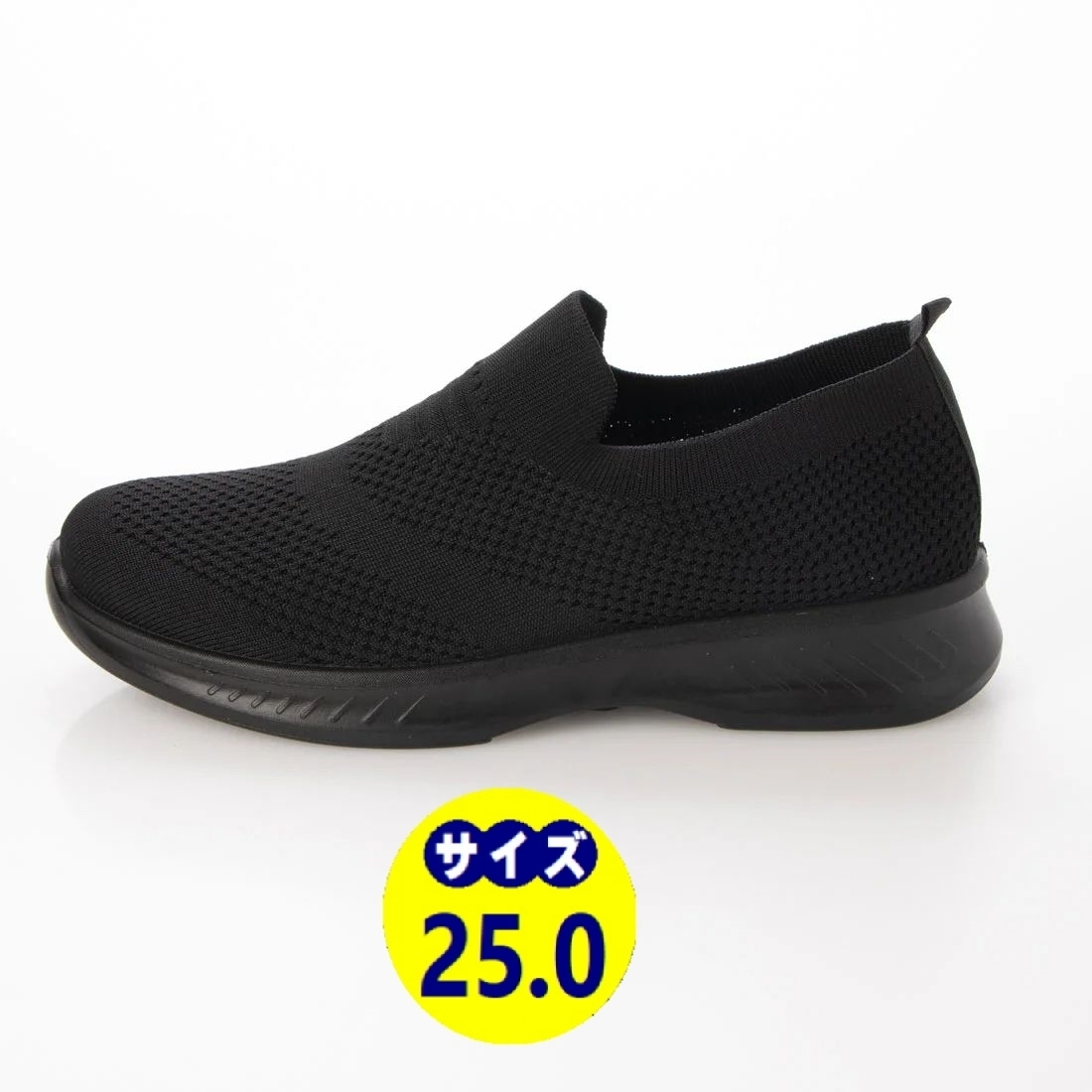 フライニットスニーカー スリッポンスニーカー 新品『22537-BLK-250』25.0cm 散歩 室内履き