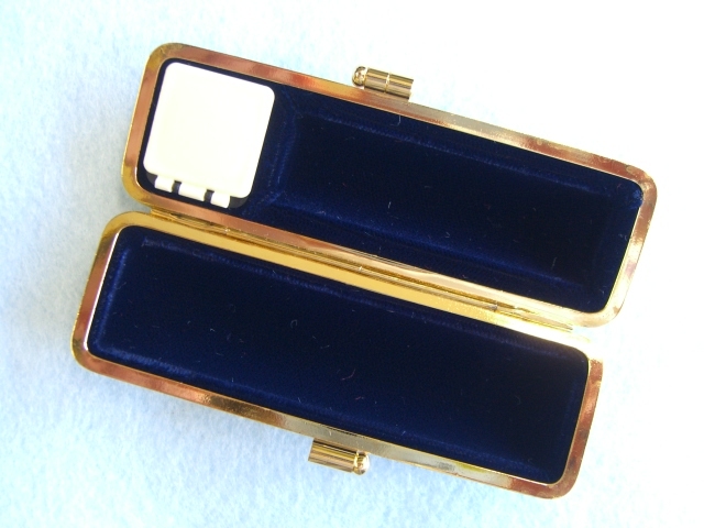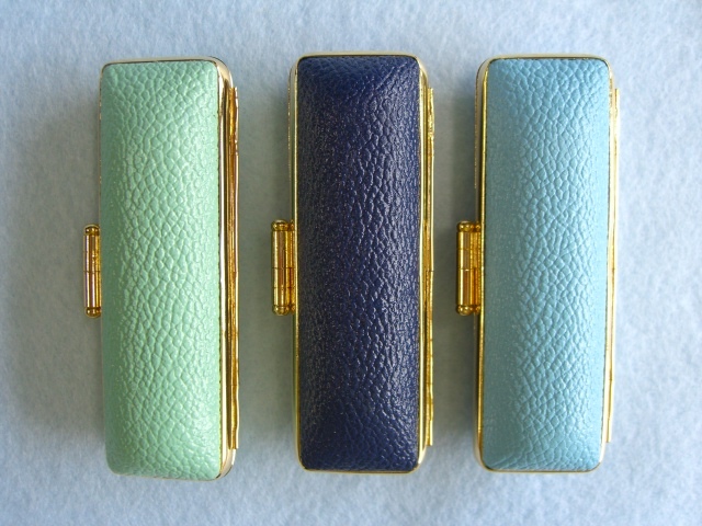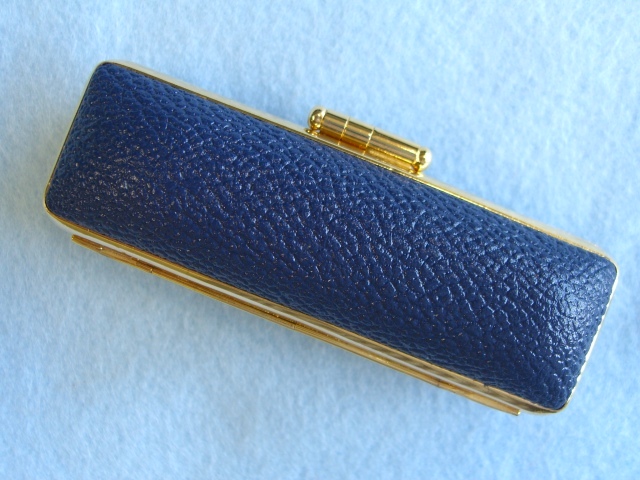 16.5ー18mm用 金色枠 牛もみ革印鑑ケース 高級朱肉付き 紺 ネイビー