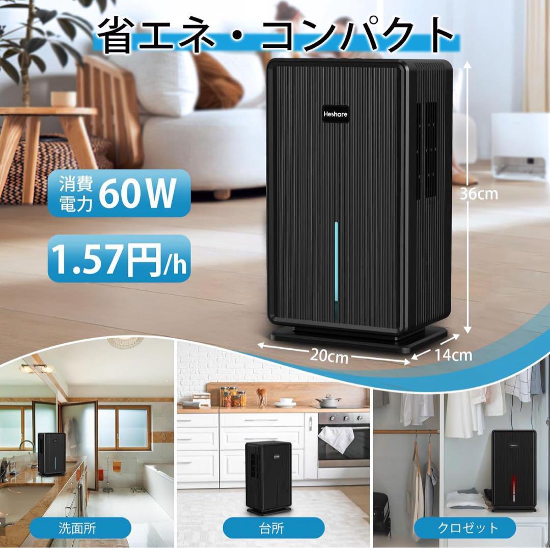 収納する際にも邪魔にならない。適用面積:約3~15畳(環境、空間、気流などの要因によって、除湿能力は弱くなる場合があります。)。
