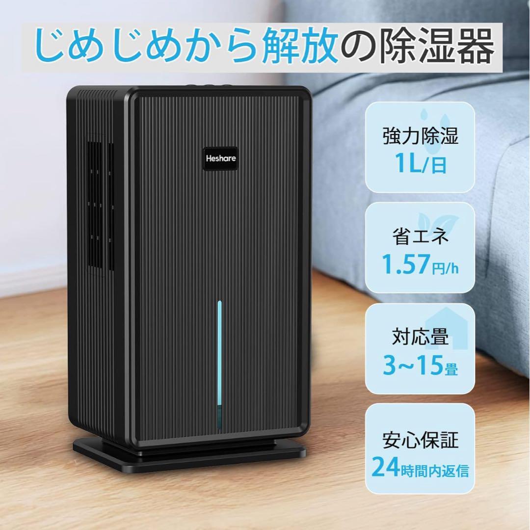 ペルチェ式除湿機、ダブル半導体冷却シートを搭載し一日最大約1Lの強力除湿力(30℃/80%)、梅雨、雨季、湿度高い夏の室内など場合、カビ、家の湿気除湿対策、結露対策、梅雨対策として大活躍!3L大容量タンクも搭載され、こまめに水を捨てに行く手間がかからなくて便利で快適。