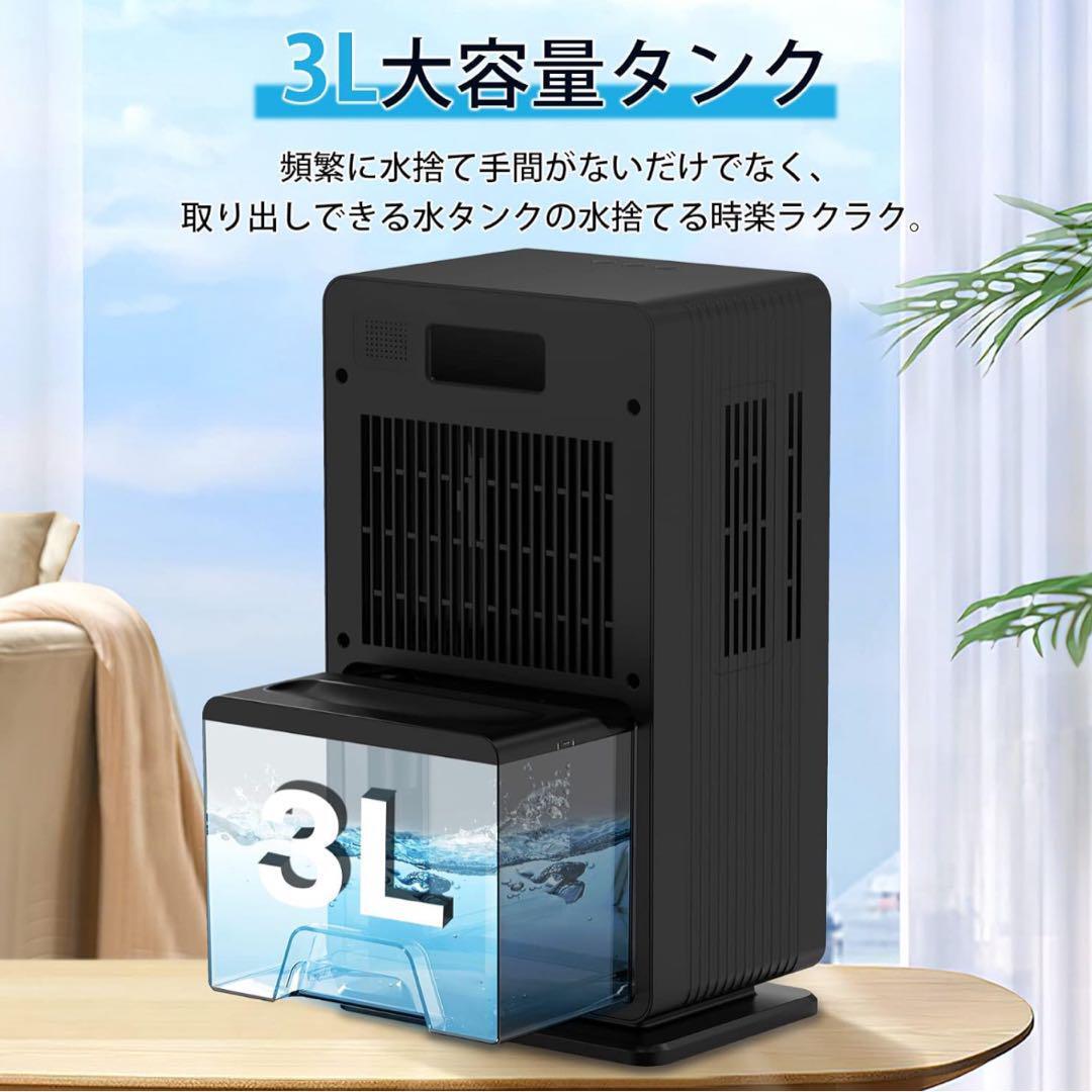 除湿機 大容量 3L 強力除湿 梅雨・湿気対策 満水停止機 5-16畳対応 省エネ 静音 コンパクト 部屋干し 除湿器 小型【正規品】 軽量 じょしつき 静音 7色ランプ ハンドル付き(black)
