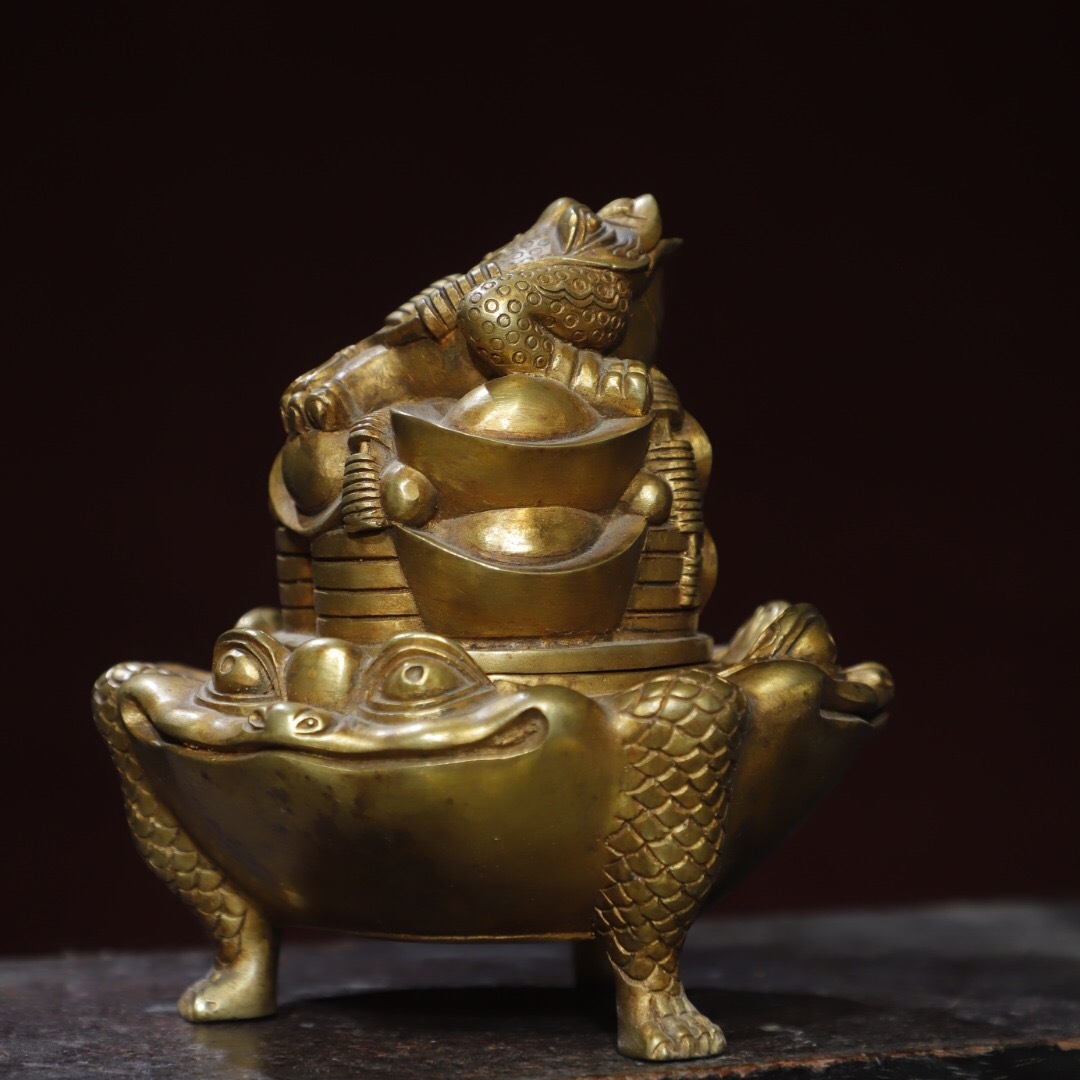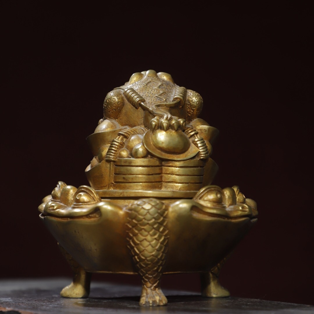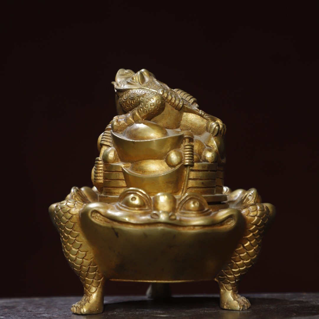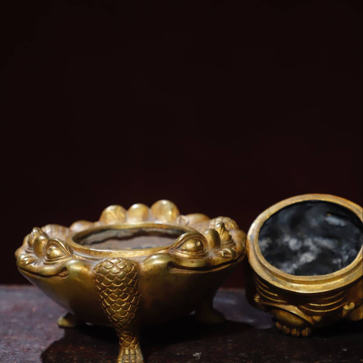 | 【蔵友館蔵品・銅製・塗金・金蟾熏香炉・置物・賞物】・古董品・中国古玩・時代物・希少珍品・中国時代美術 |