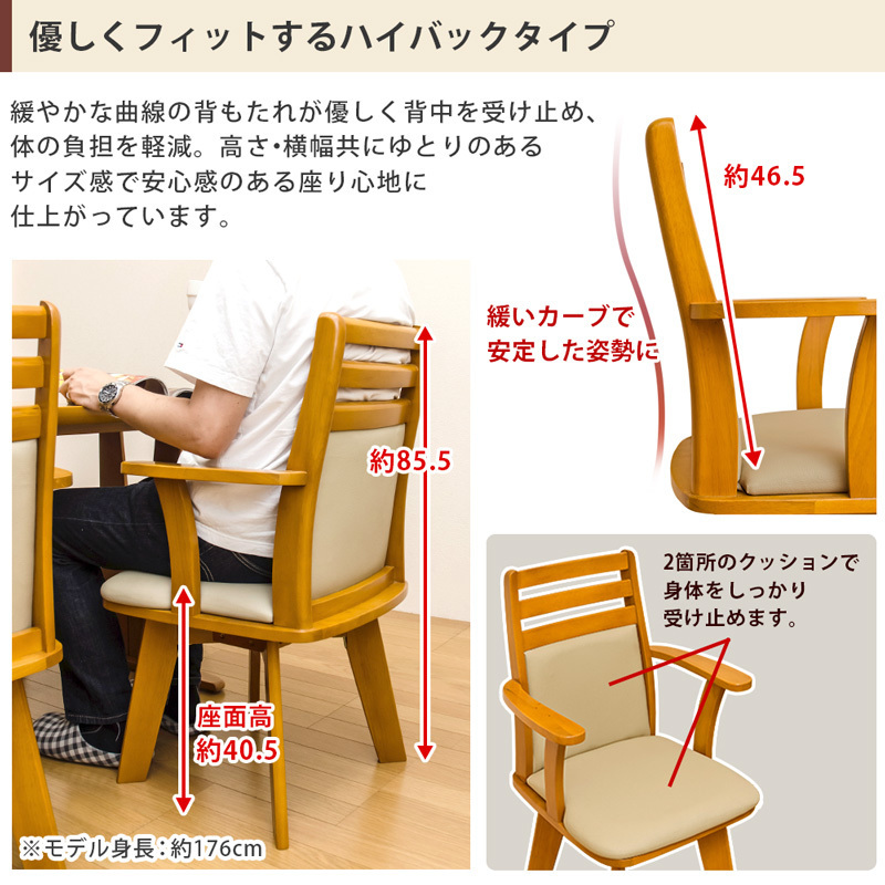 | 材質 | 天然木ラバーウッド(ラッカー塗装) 座面/張り材:合成皮革(PVC) 内材:ウレタンフォーム |