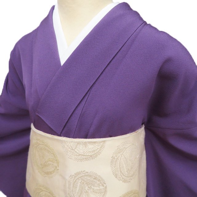 丈164cm(+0) 裄68.5cm(+1) 袖丈49cm(+4) 前幅25cm 後幅30cm ※サイズのお直し、承ります。 (身丈のみ、身幅のみのお直しは承っておりません) ※身丈は肩から測っております。 ※()内は※()内の数字はお直しで直せる長さを示しています。お仕立て直しの場合は胴裏を付け替えるため、さらに長く直せる場合があります。詳しくはお問い合わせください。 単位:cm 素材 正絹 商品ランク A ●着用時期 10月~5月(+-2週間) ●着用シーン 結婚式、披露宴、パーティー、お出掛け、お茶会、式典など ●お色 古代紫色 未使用の美しいお品物です。 写真に写っている着物のみの販売で、小物等の付属品はついておりません。 一部商品は実店舗・他サイトでも並行して販売しておりますので売り切れの際はご了承ください。 その他多数販売中 n | ||||||