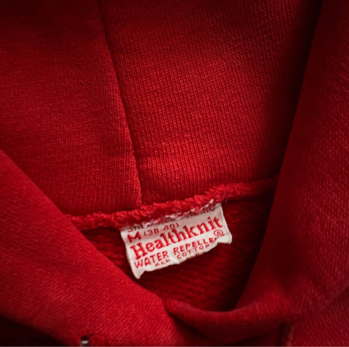 Rare 60s Healthknit スウェット パーカー の出品になります。程よくサンフェイドした赤ボディのフーディ。首元にはHealthknitのタグが残っております。丸胴ボディにラグランスリーブ、裾、袖共にリブ長とヴィンテージスウェットがお好きな方でしたら拘りのポイントもしっかり押さえた1枚です。また、サイズ表記はMですが縮み等も少なく身幅、着丈共に申し分ないサイズ感で着用可能です。年代相応の小傷等御座いますが雰囲気として楽しんで頂ける方にはおすすめの逸品。是非この機会に御検討下さい。
