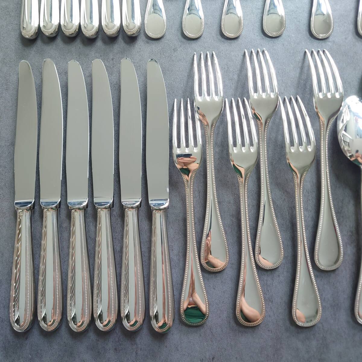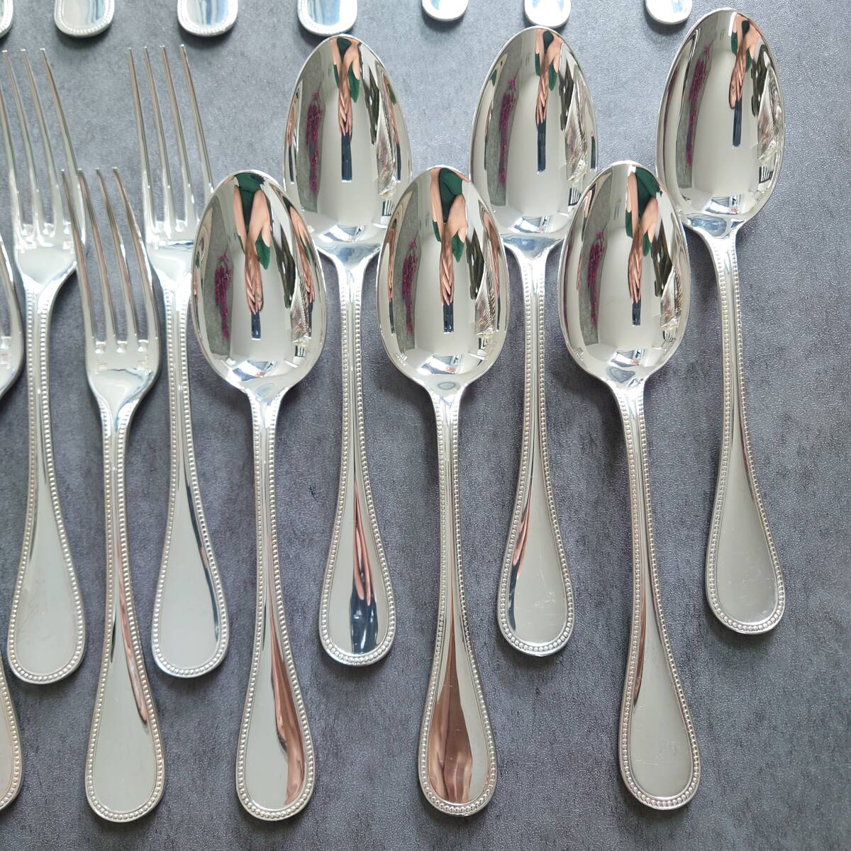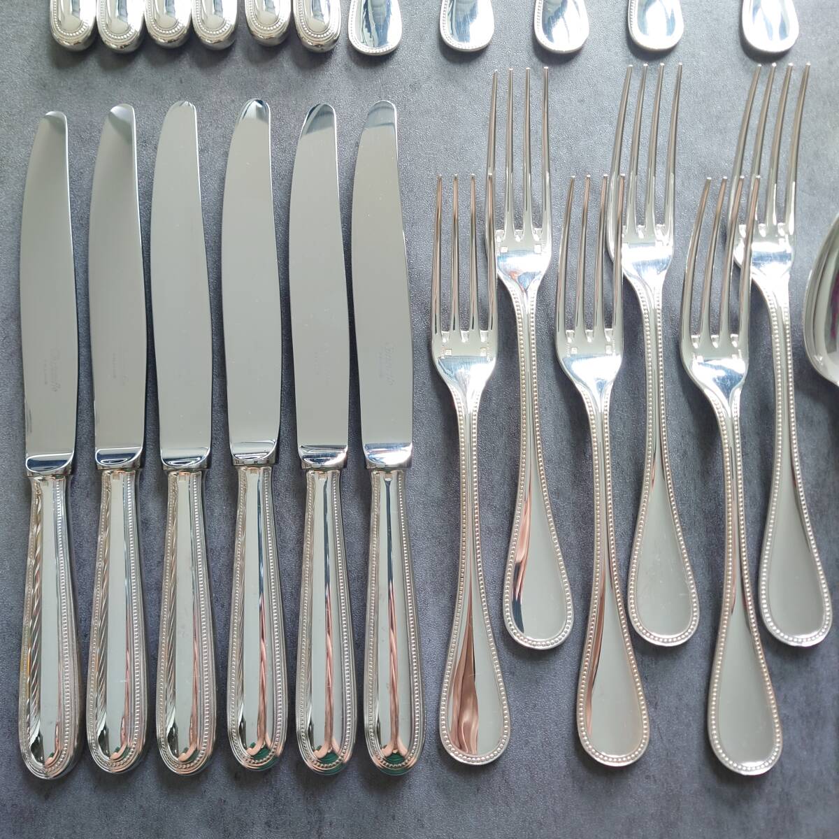 カトラリー同士の接触傷や使用に伴う小傷、お手入れによるスレなど少しだけありますが、状態良く美品のお品物と個人的には考えております。