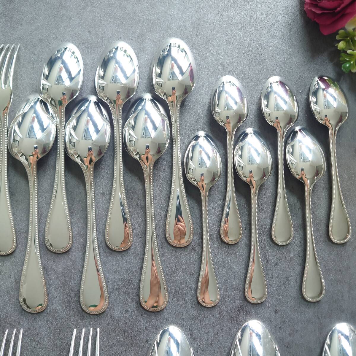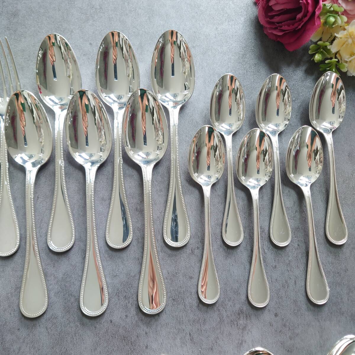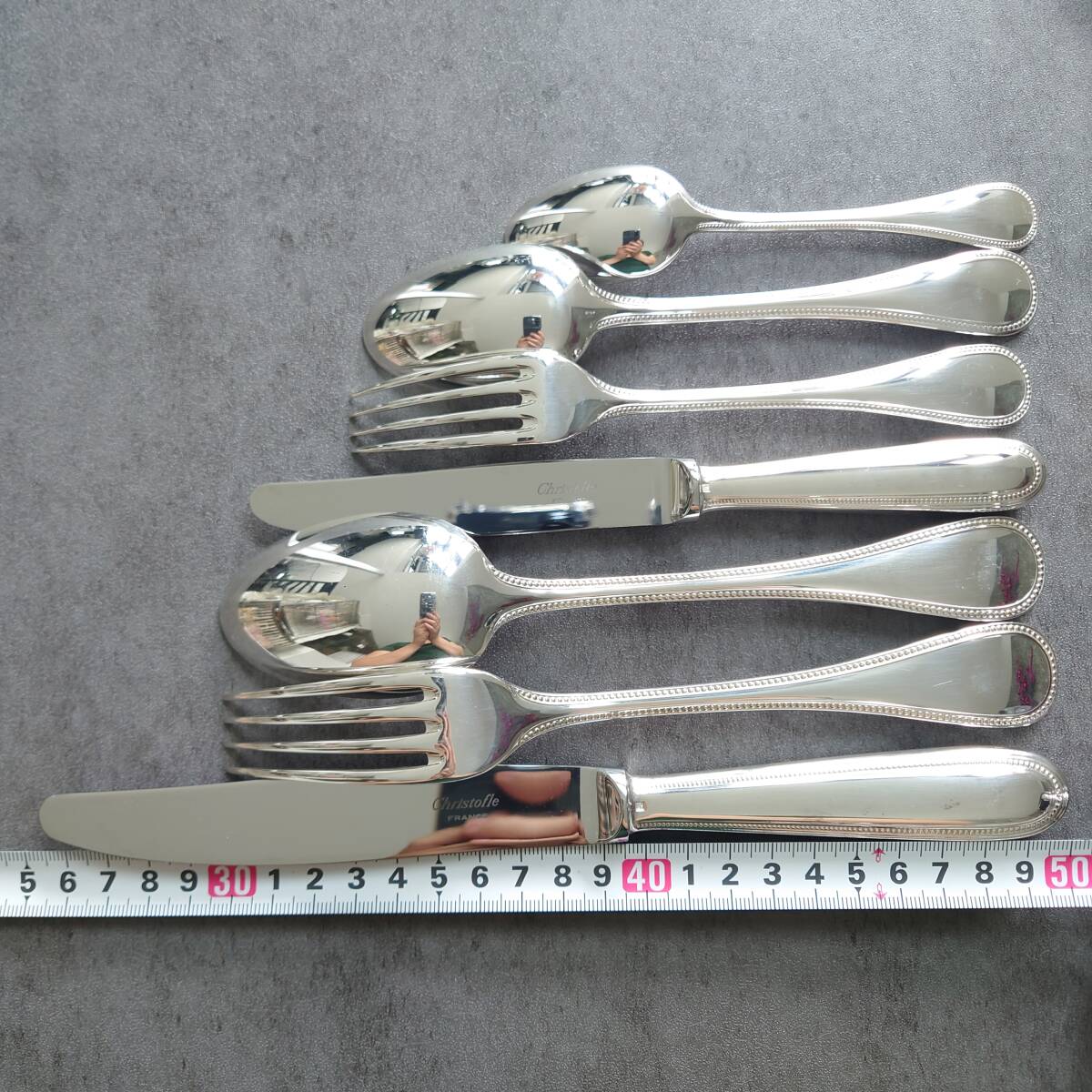 カトラリー同士の接触傷や使用に伴う小傷、お手入れによるスレなど少しだけありますが、状態良く美品のお品物と個人的には考えております。