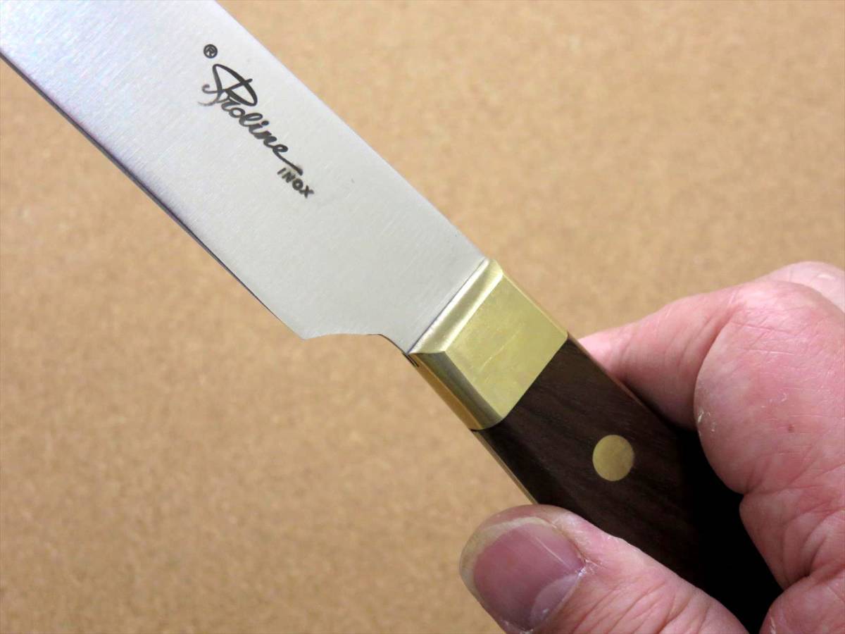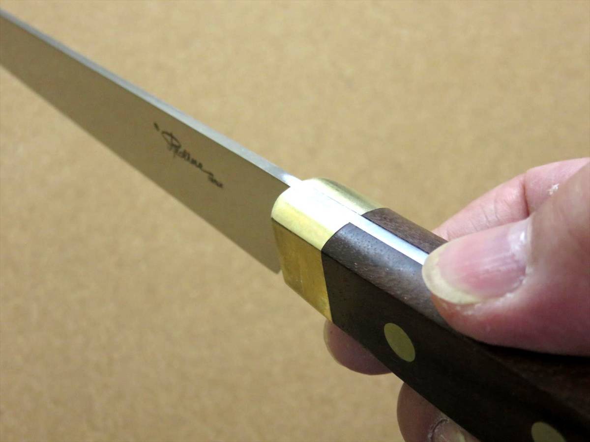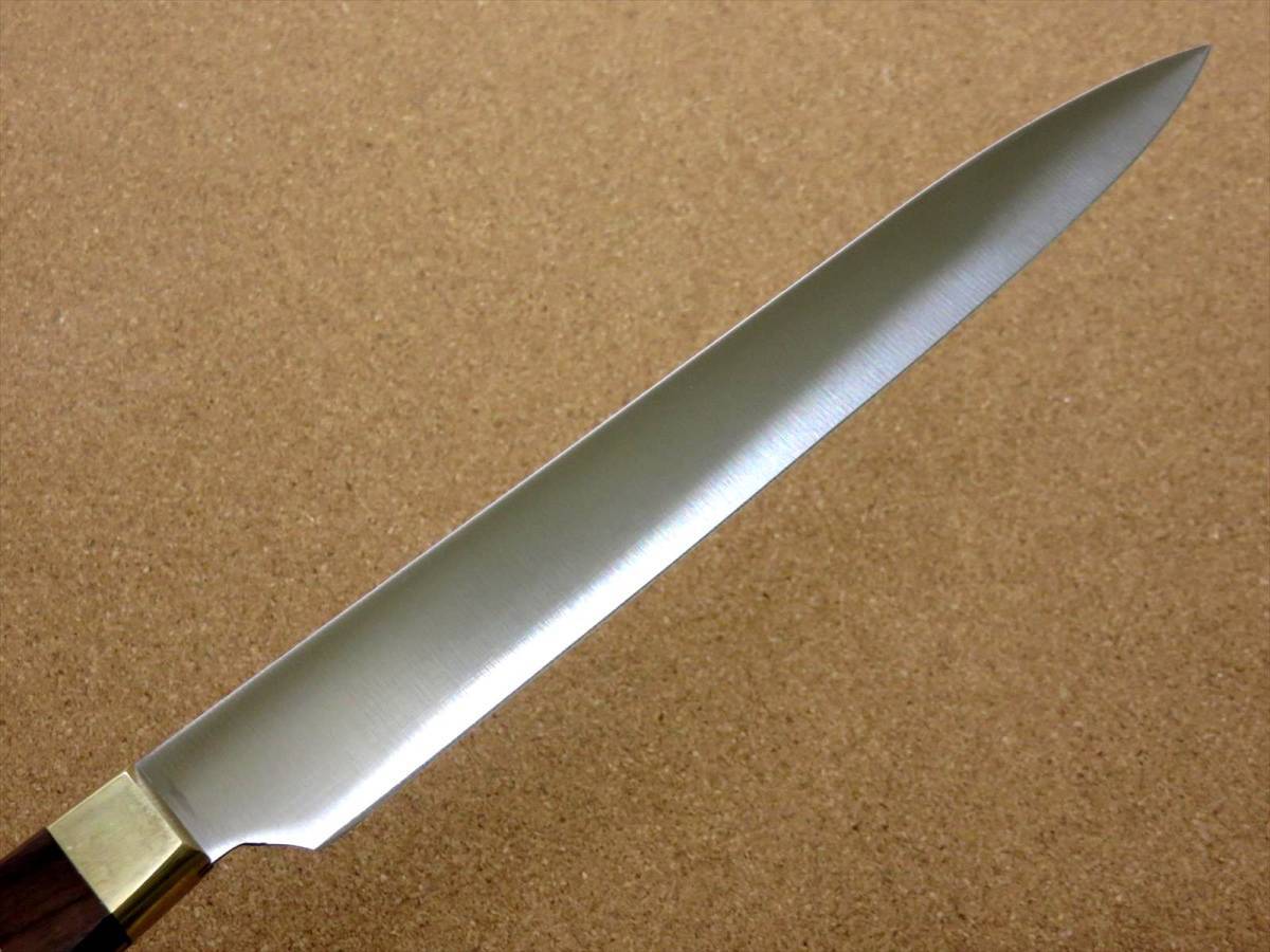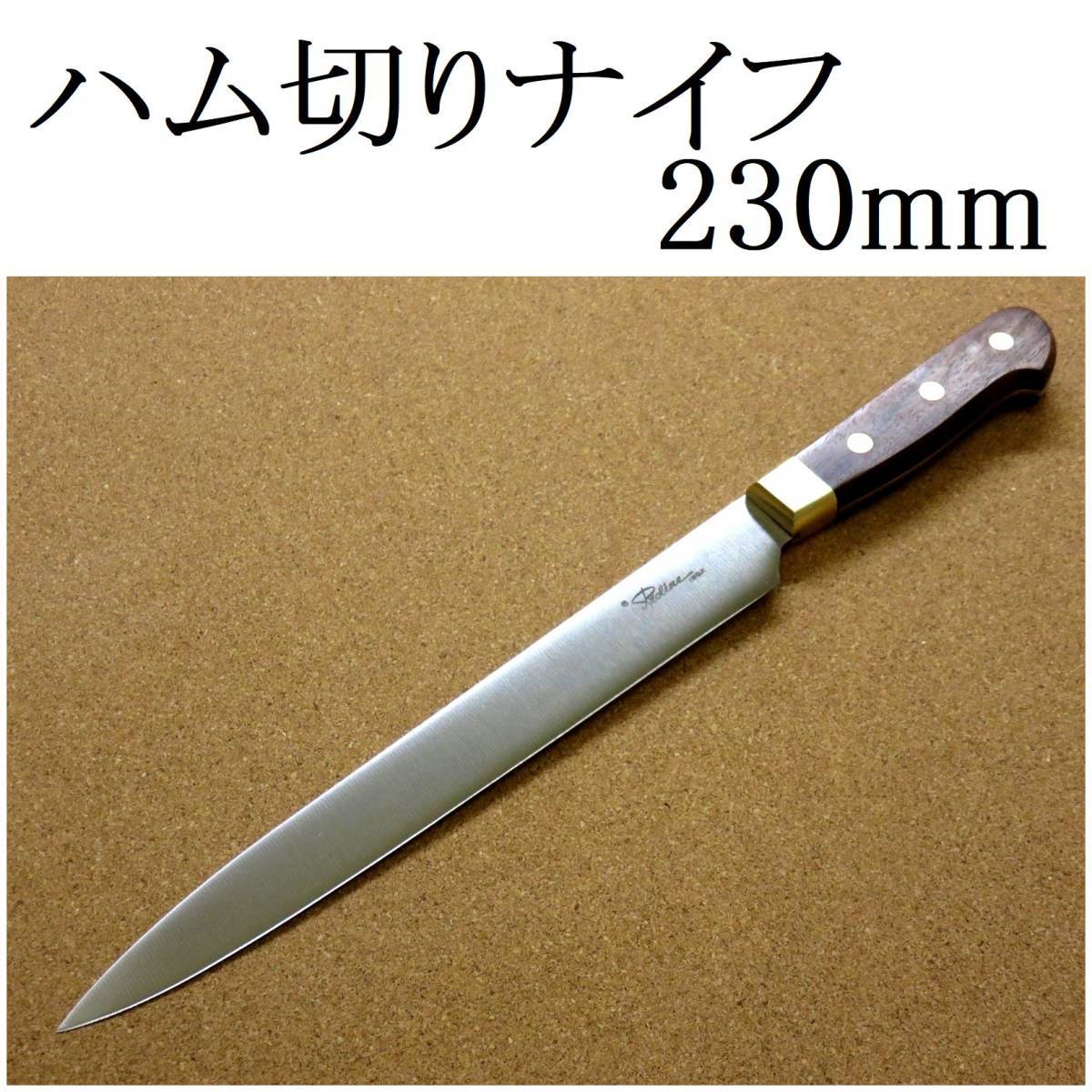 関の刃物 ハム切りナイフ 23cm (230mm) 8Aステンレス鋼 真鍮口金付き ハムなどスライスする細めで刃渡りの長い両刃包丁 日本製 在庫処分品