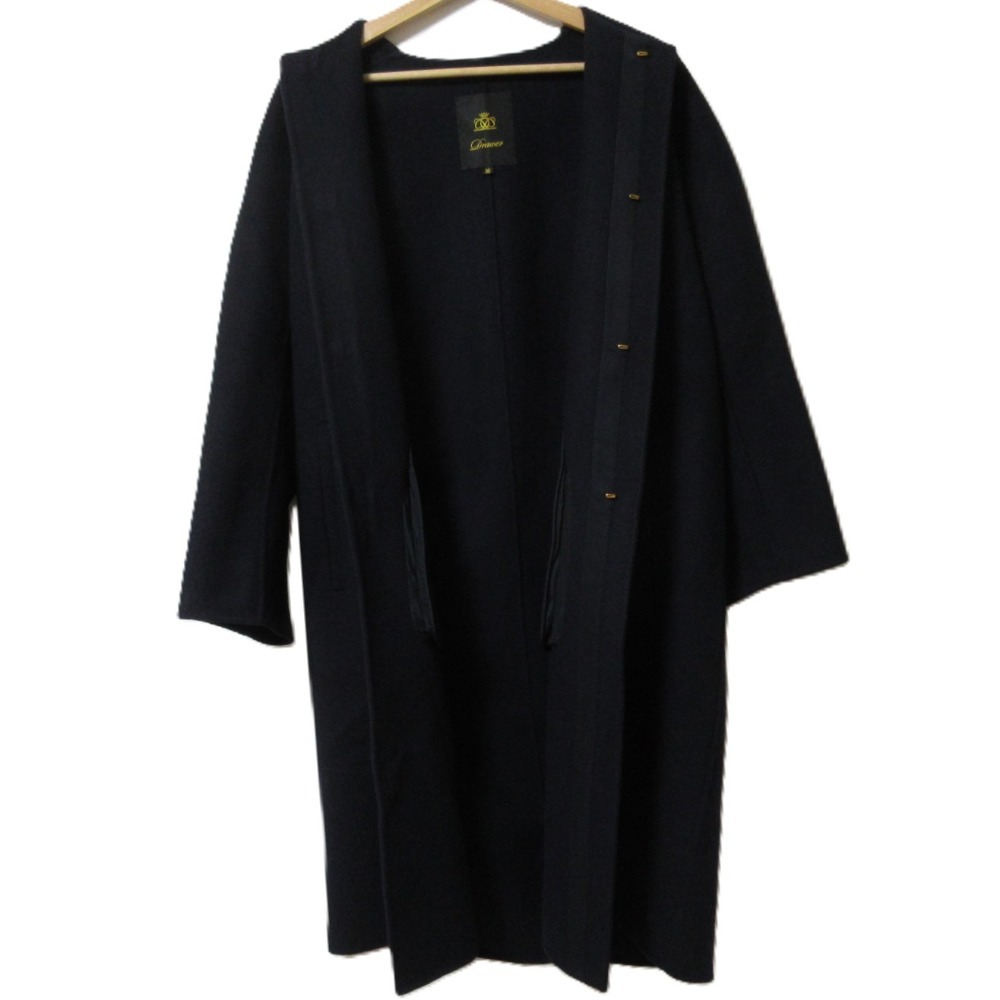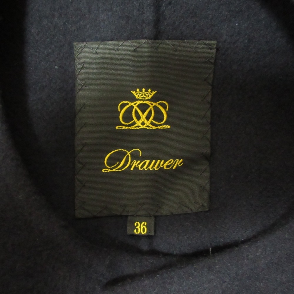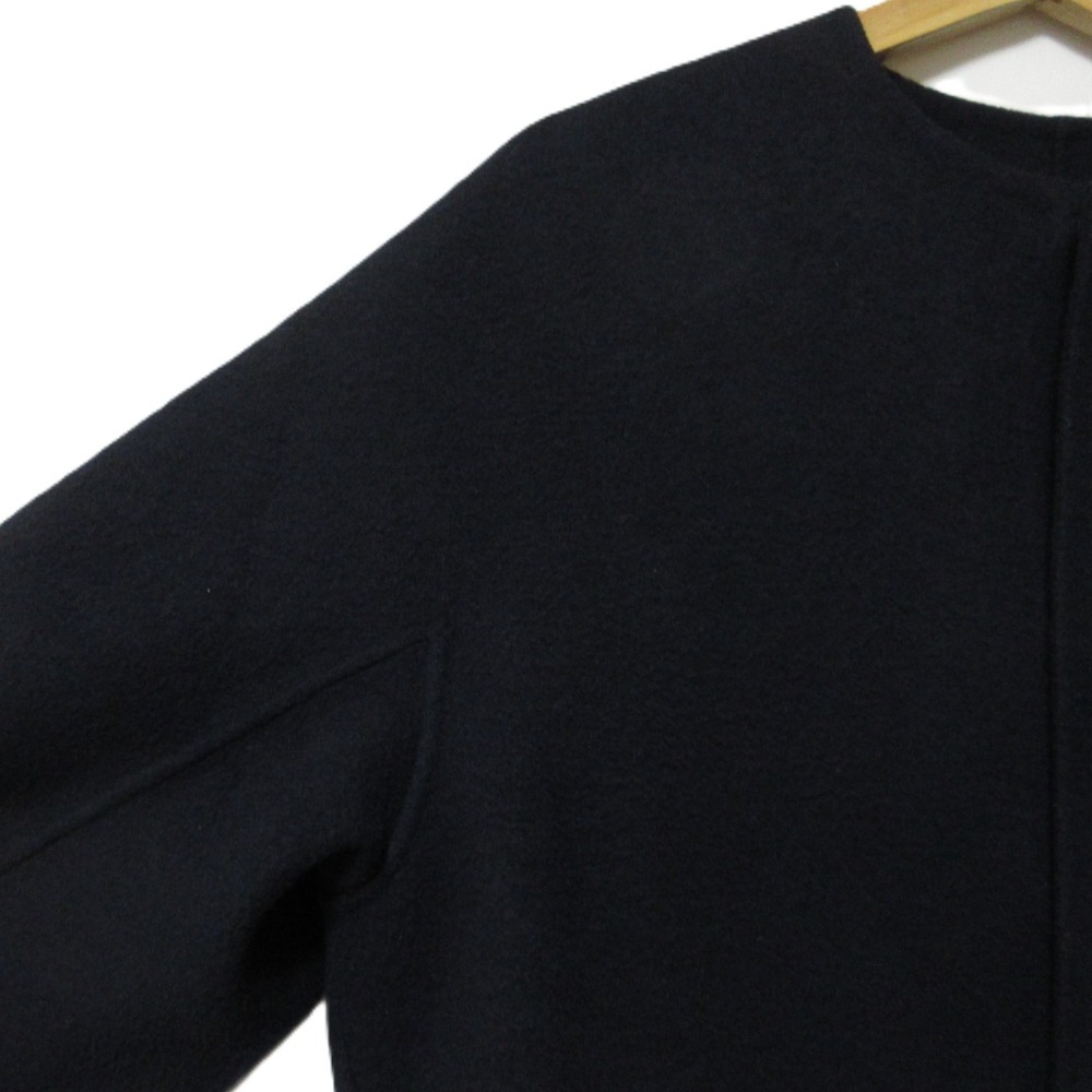 美品 Drawer ドゥロワー ウールケヌキノーカラーコート 6525-299-0723 サイズ36 ダークネイビー