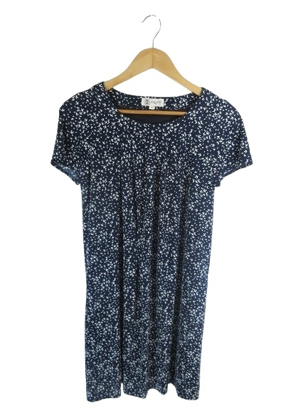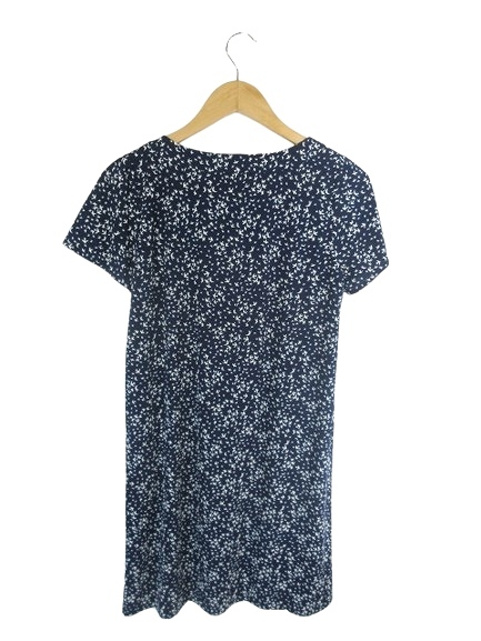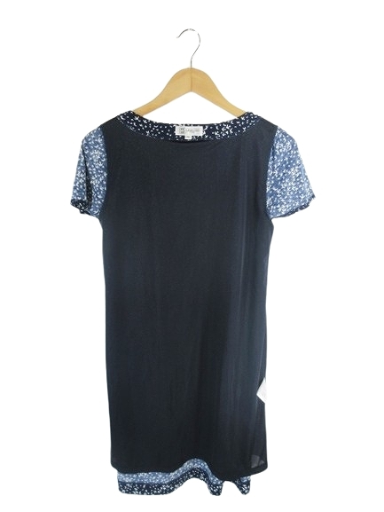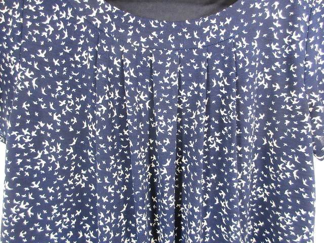 ミッシェルクラン MICHEL KLEIN プルオーバー トップス 半袖 裏地付き 総柄 鳥 ネイビー サイズ38 QQQ レディース