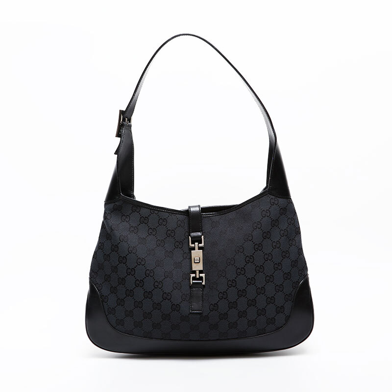 極美品 GUCCI GG キャンバス ジャッキー ラージ ショルダーバッグ ブラック
