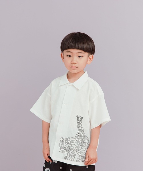キーワード:ブラウス シャツ キッズ 子供服 コットン 開襟 刺繍 半袖 夏 春