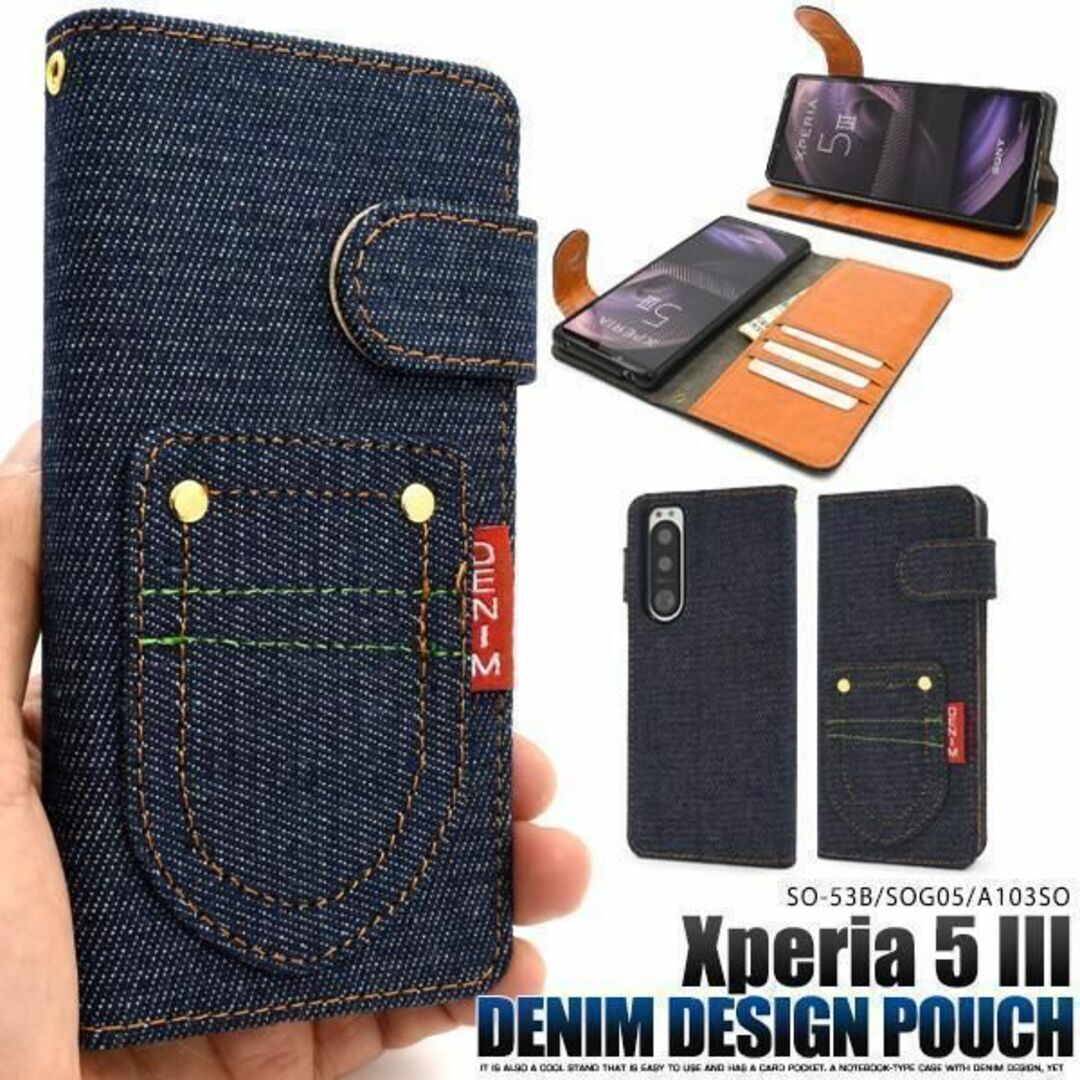 Xperia 5 III SO-53B/SOG05 デニムデザイン手帳型ケース
