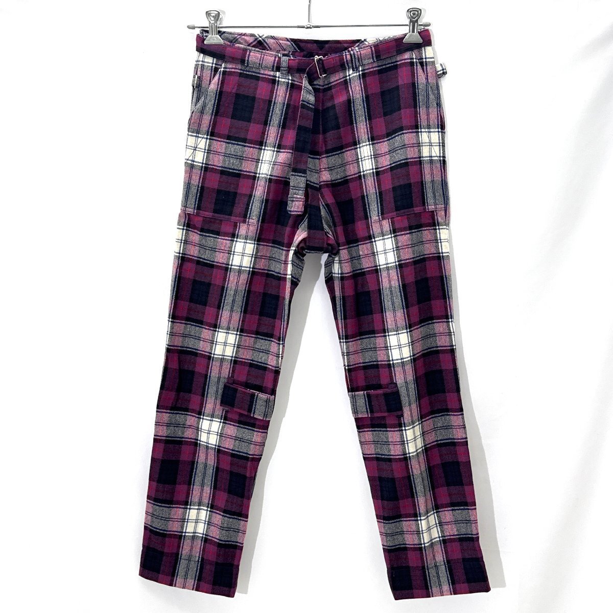 表示サイズ:S ウエスト.74cm ※ベルトで調節可能 総丈.93cm 股下.67cm 股上.28cm 裾幅.18cm ワタリ幅、脚の付け根片側.30cmです。 MS 250118-12 |