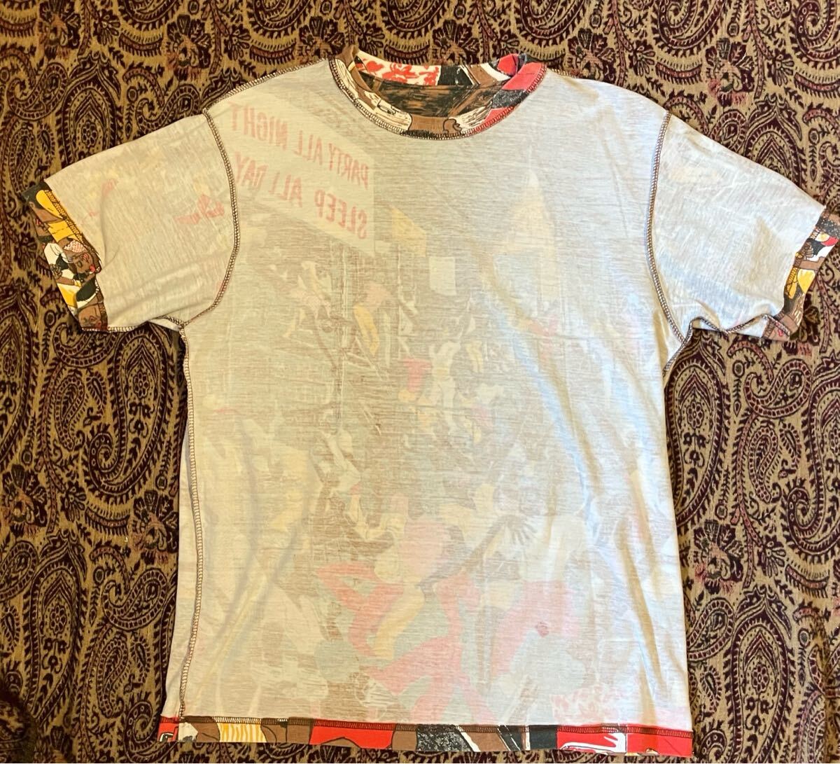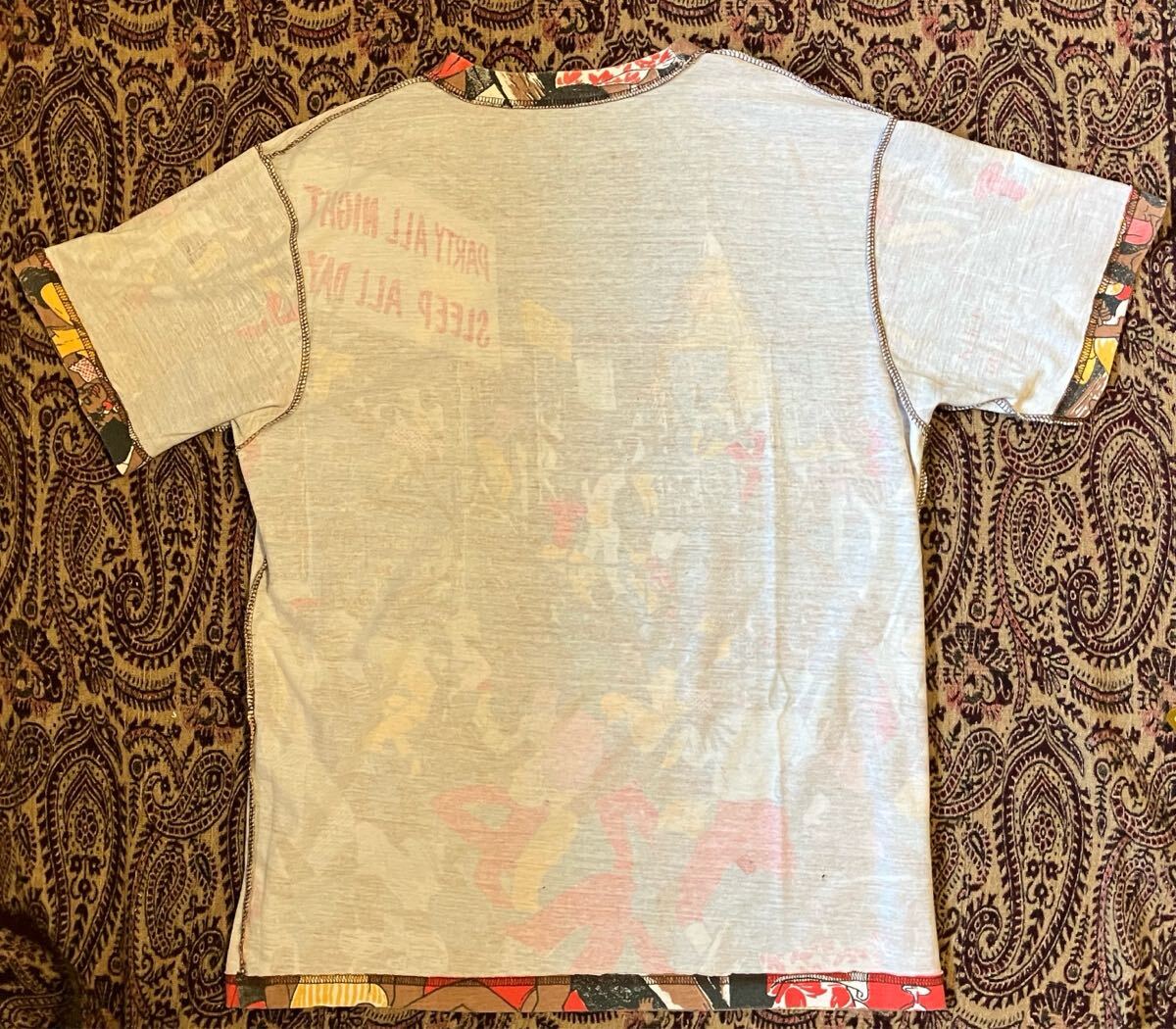 中古のヴィンテージTシャツです。全面プリント。メンズLサイズ.、購入時からタグ無しです。中古品ですので状態は写真でご確認ください。