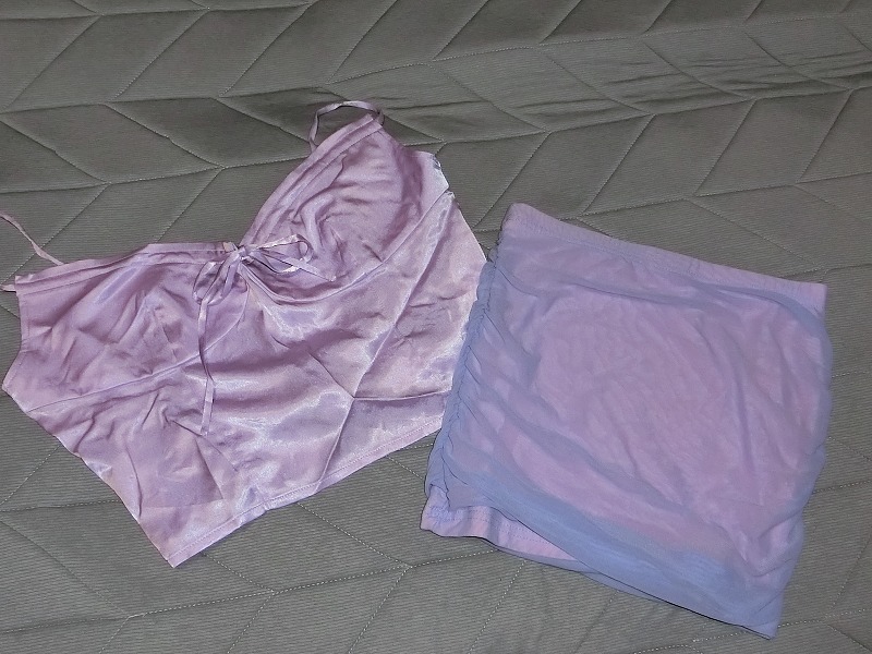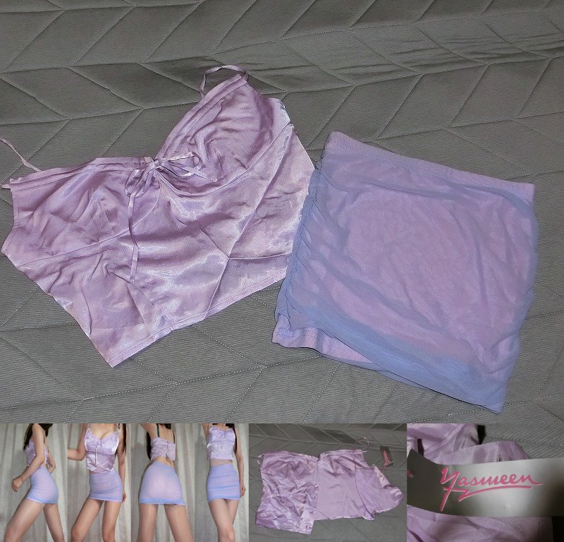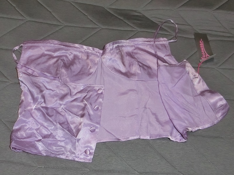 c94★キャミソールは新品★おすすめです★セット★背中ボタン開閉オープンタイプショート丈キャミ&超ミニスカート  光沢サテン