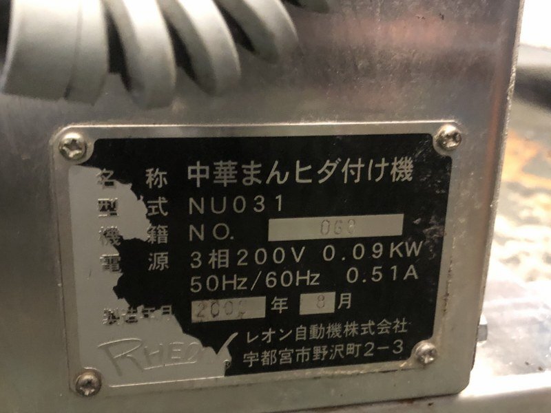 T2300209 動作確認済み レオン自動機 中華まんヒダ付け機(ヒダ付け機コンベア付き)2005年 NU031 3相200V 総稼動時間6,231時間