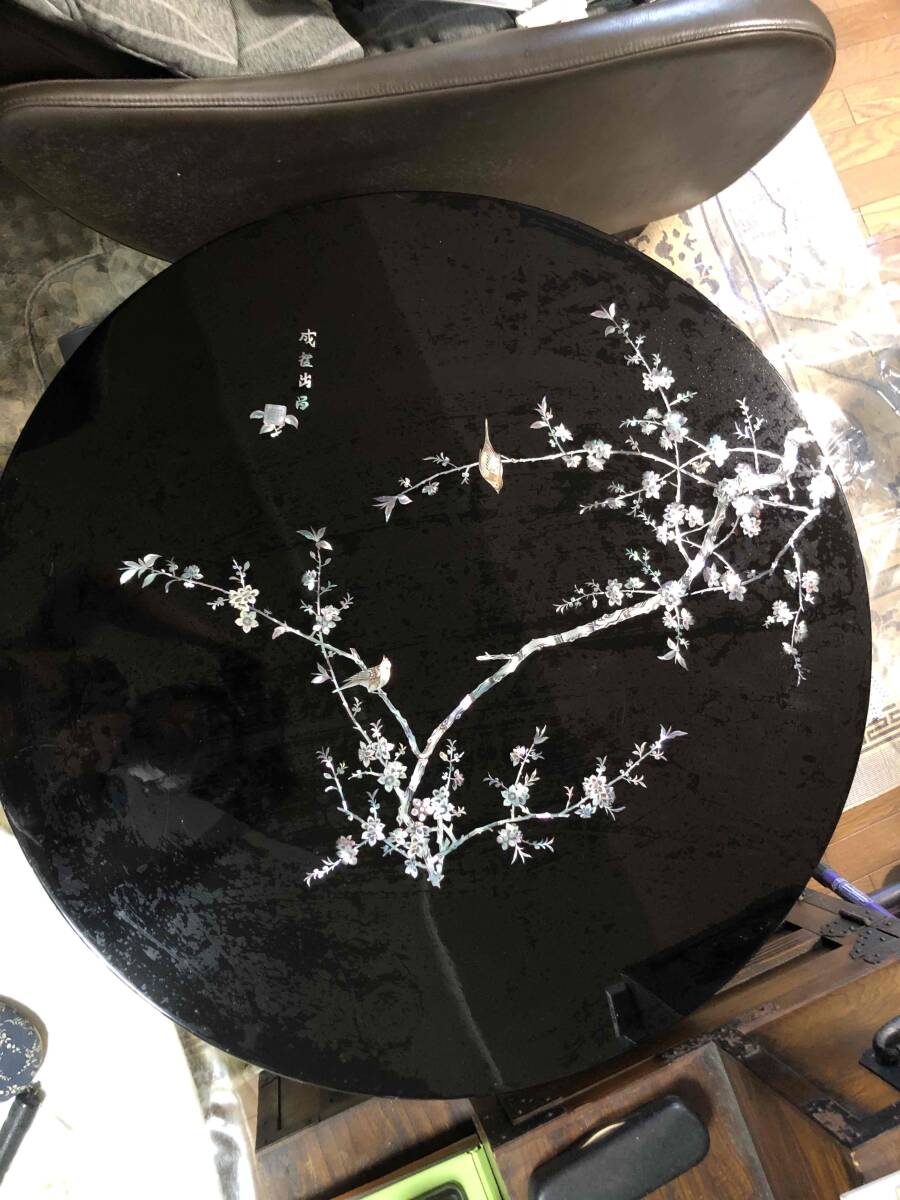 ・実家の整理にて出てきた黒漆塗りに螺鈿細工が施された、美しい円卓(座卓)です。