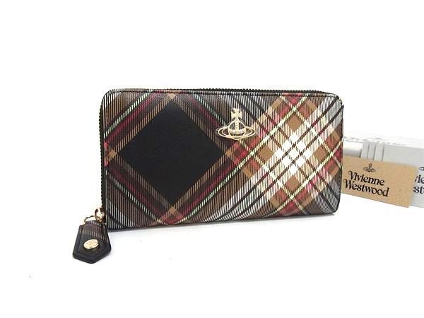 ■新品■未使用■ VivienneWestwood ヴィヴィアンウエストウッド オーブ チェック柄 レザー ラウンドファスナー 長財布 FN5076