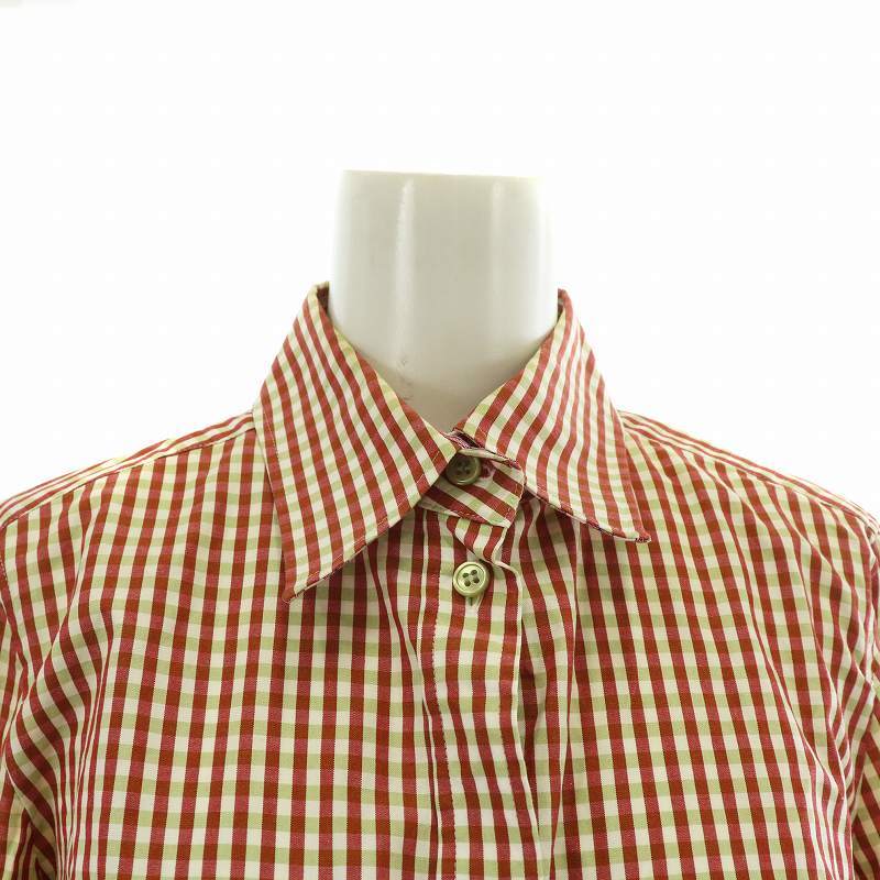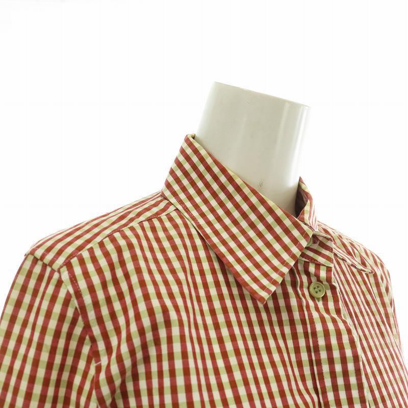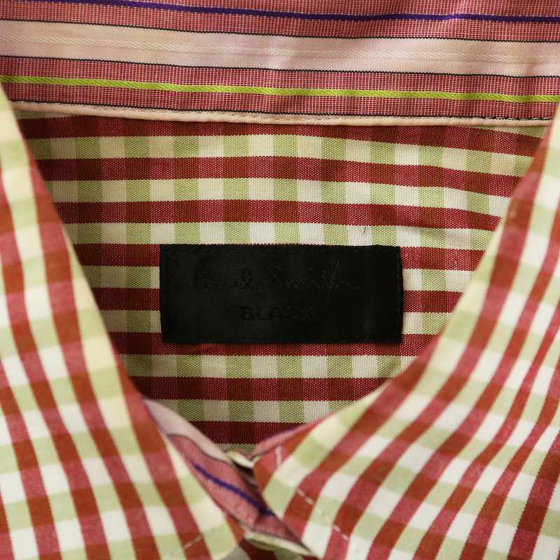 ポールスミス ブラック Paul Smith BLACK シャツ ブラウス 長袖 チェック柄 総柄 リボン 42 XL 赤 レッド 緑 グリーン