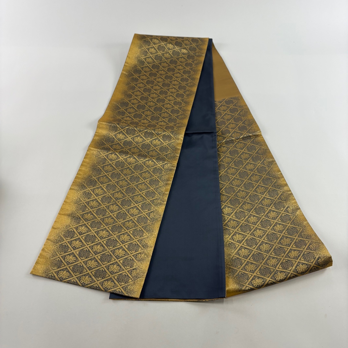 | 袋帯 美品 秀品 桐 斜め格子 箔 金色 六通 正絹 【中古】 |
