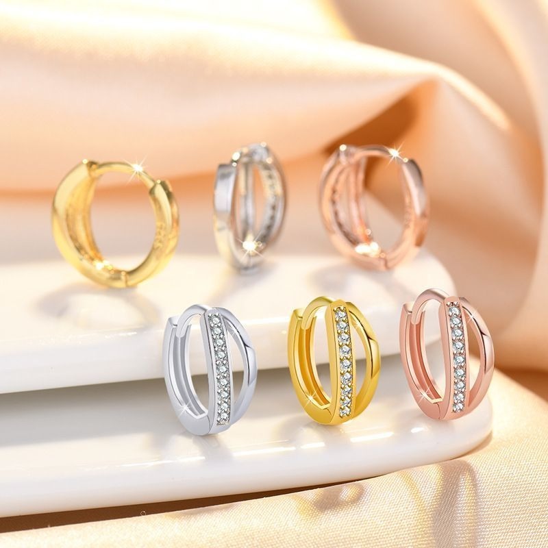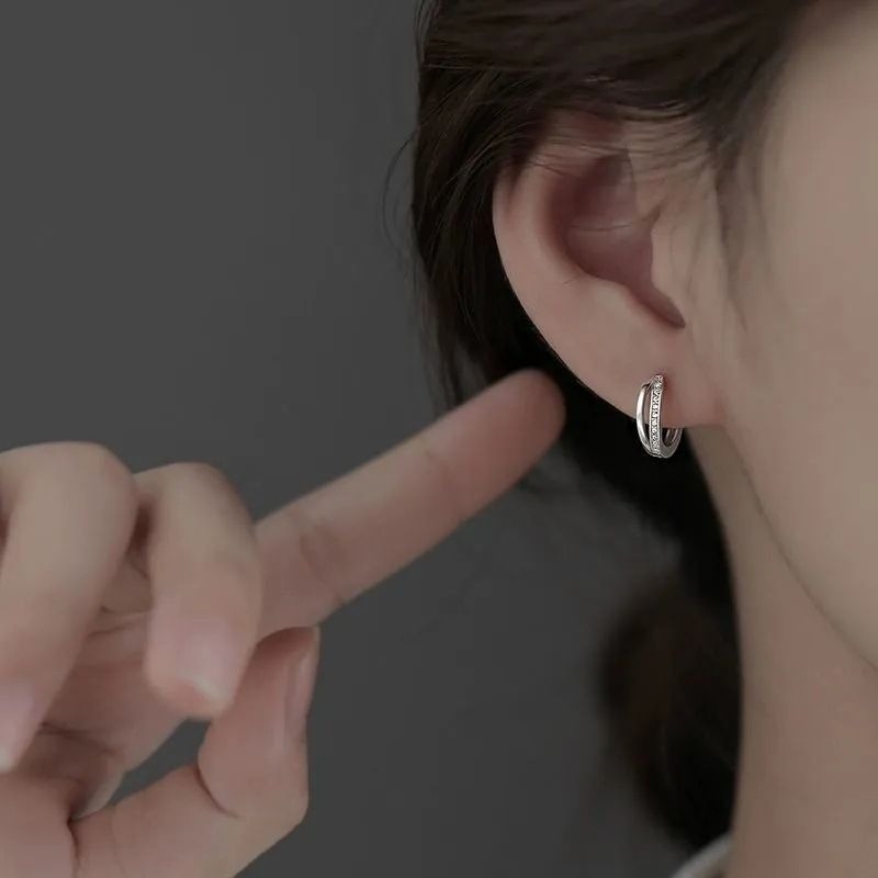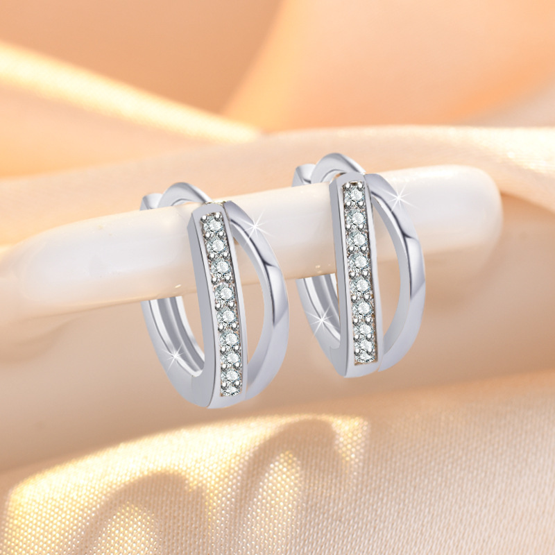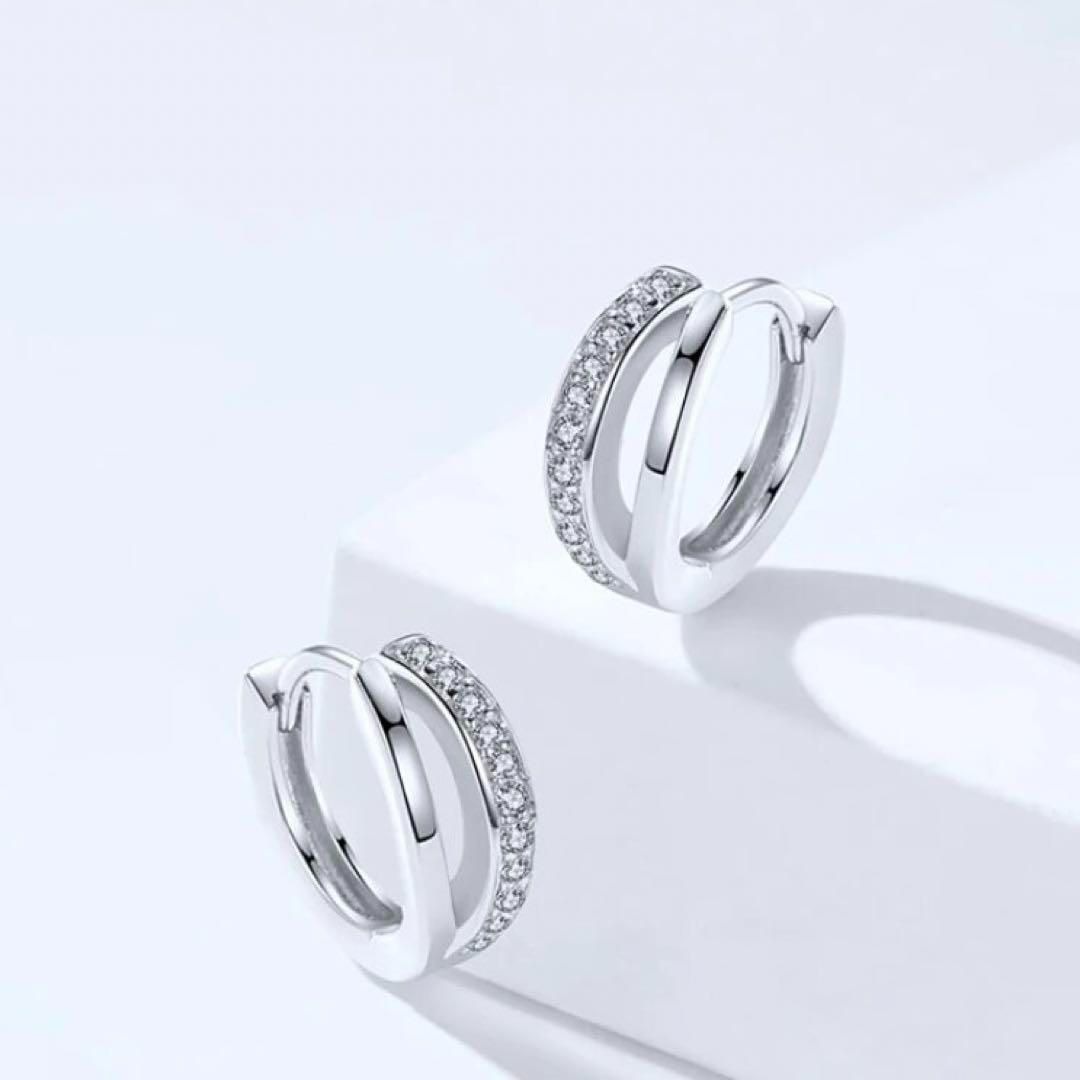 2本のラインが組み合わさった、ジルコニアがキラキラと輝くフープピアスです。