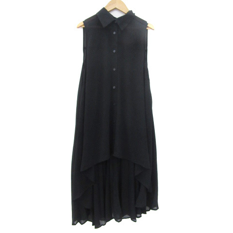 デュラス DURAS シャツワンピース ミニ丈 ノースリーブ プリーツ F ブラック 黒 /YM22 レディース
