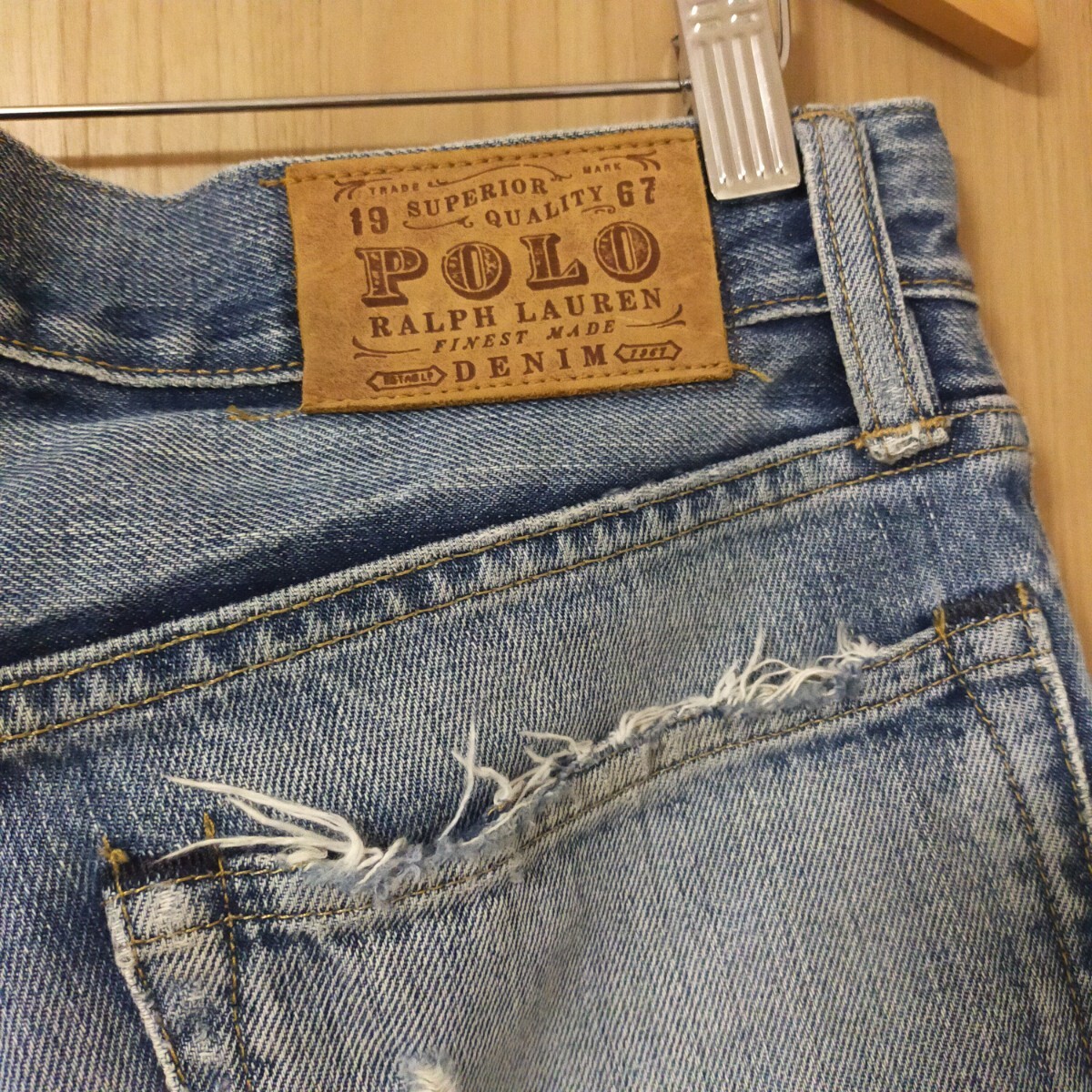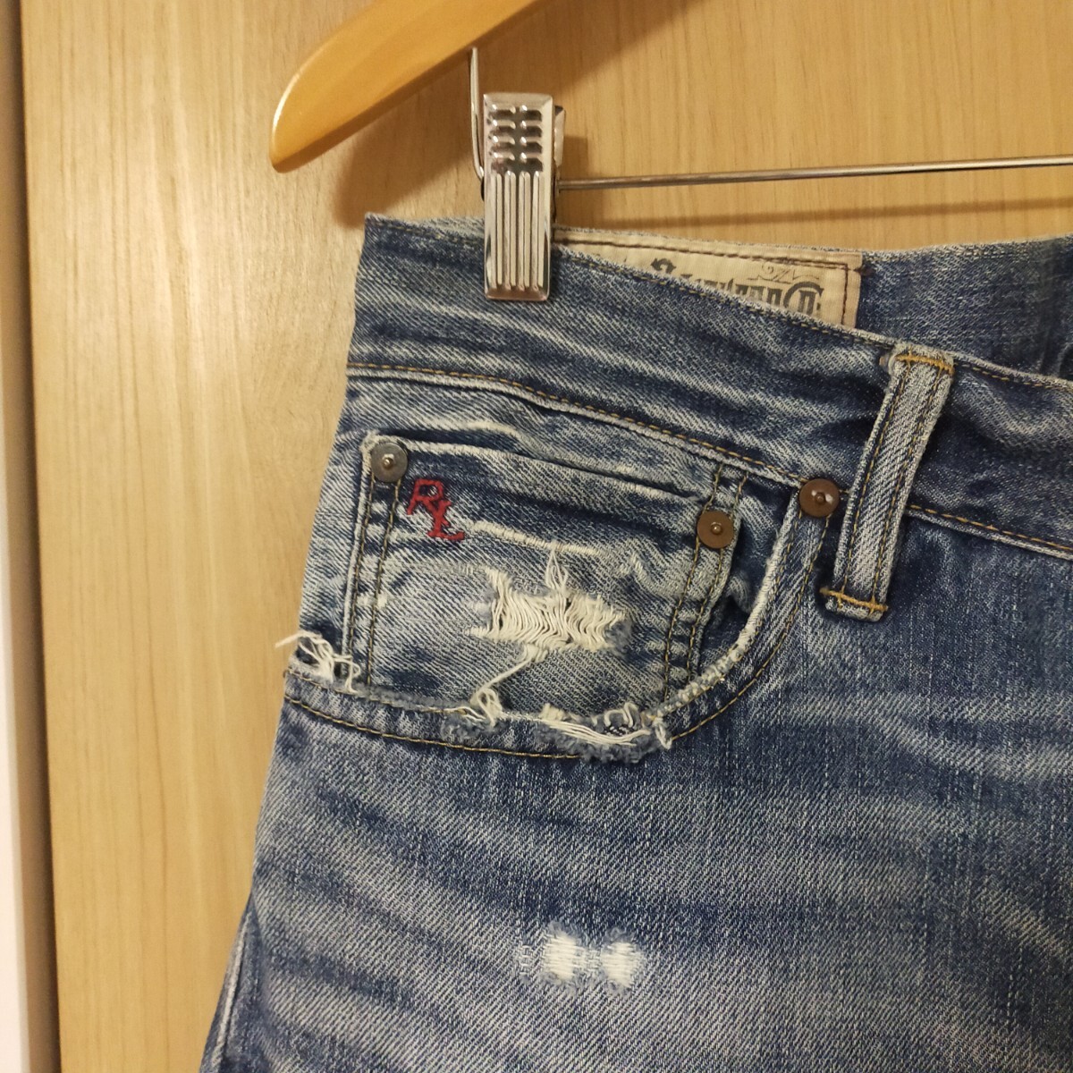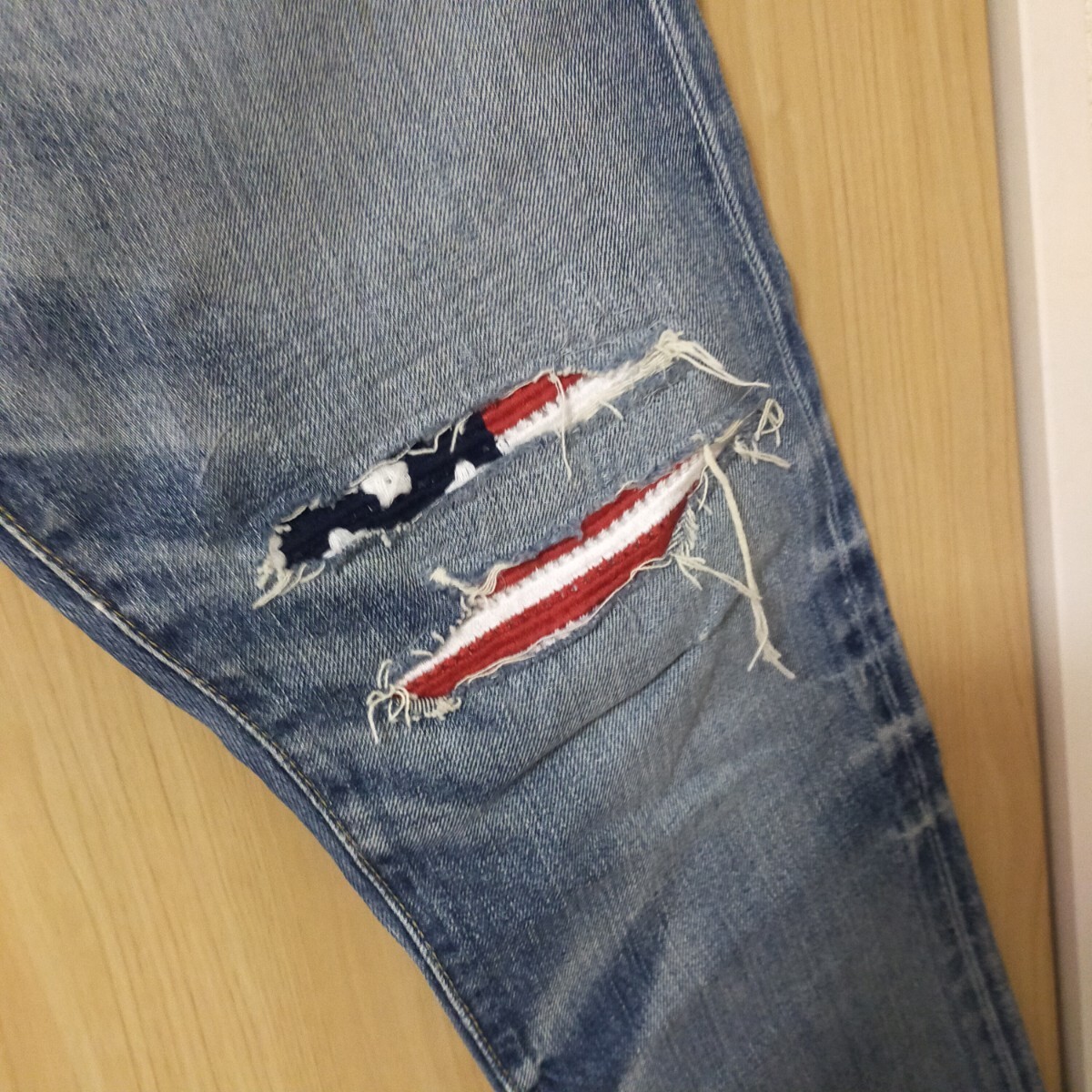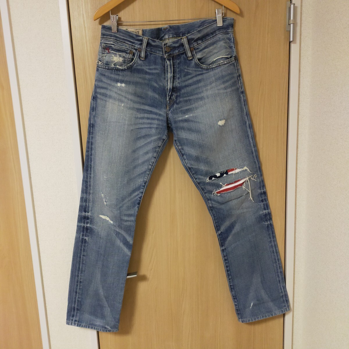 | POLO RALPH LAUREN ポロ ラルフローレン ダメージ加工 リペア加工 デニムパンツ 星条旗 W32 インディゴブルー | |