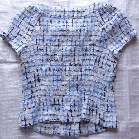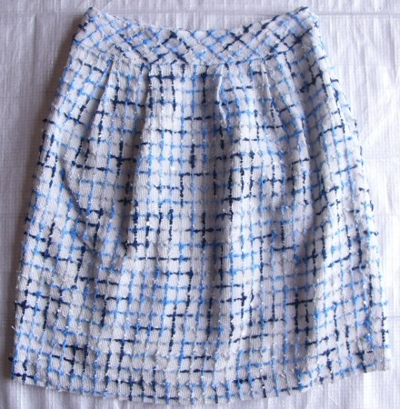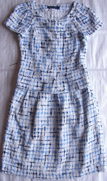 お色は、オフホワイト地に、紺~青~水色~淡い水色のグラデーションの糸で、 大き目チェックの柄模様です。