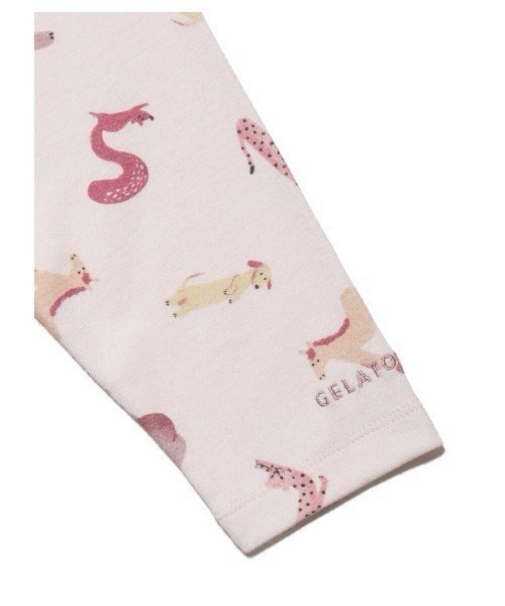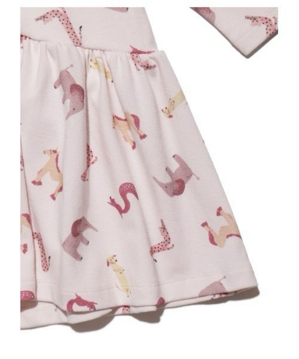 アニマルたちがくねくねかわいいポーズで、アルファベットを作って遊んでいる総柄シリーズ。「gelato pique」ならではの細かくキュートな表情と、文字をつなげると「SMILE」になる隠れたメッセージにご注目ください。女の子ならではのワンピースは、たっぷりとギャザーを寄せたフレアシルエットが気分高まる仕上がりに。ゆったりとしたサイズで仕上げ、歩く度にふんわり揺れるフォムルが愛らしさを加速させます。同じプリントのママサイズをご用意しているので、リンクコーディネートもお楽しみいただけます。