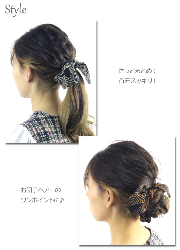 商品説明 | 大人気アクセのスカーフリボンシュシュ!! 今までのリボンヘアゴムより更に使いやすくアレンジの幅が広がりました。 ひらひら揺れるリボンが女性らしさをプラス♪ ポニーテールはもちろん、おだんごや編みこみアレンジにも!! |
