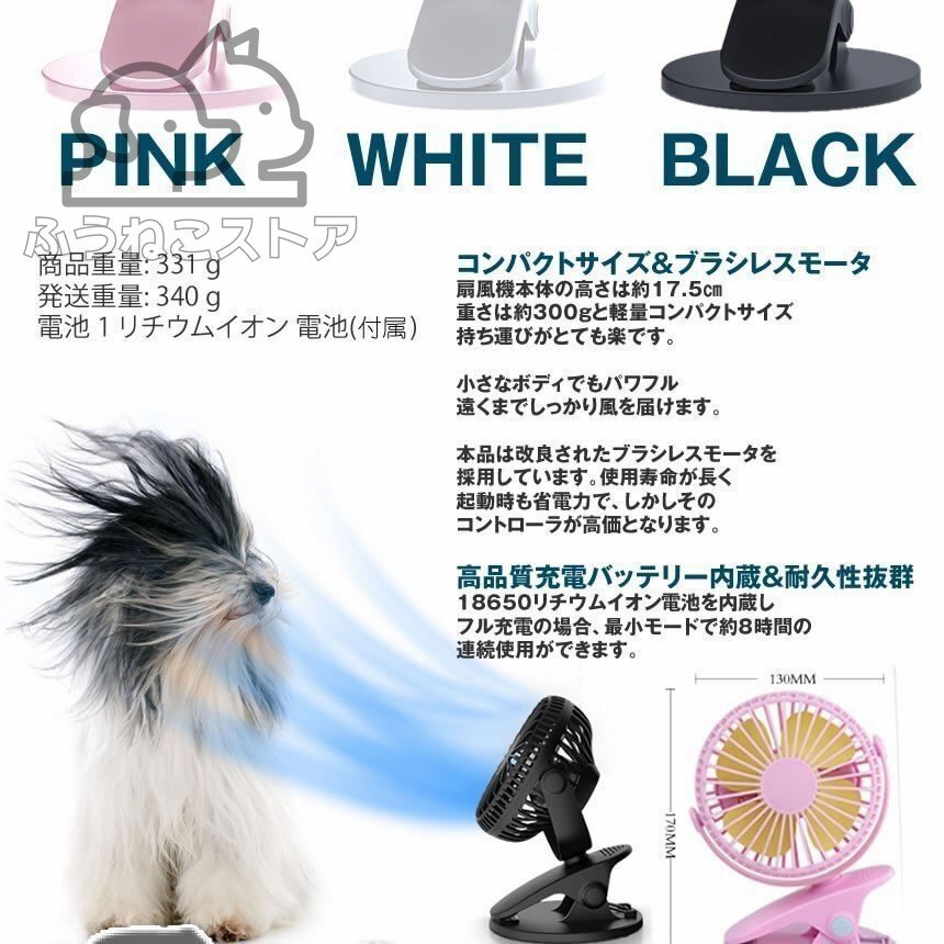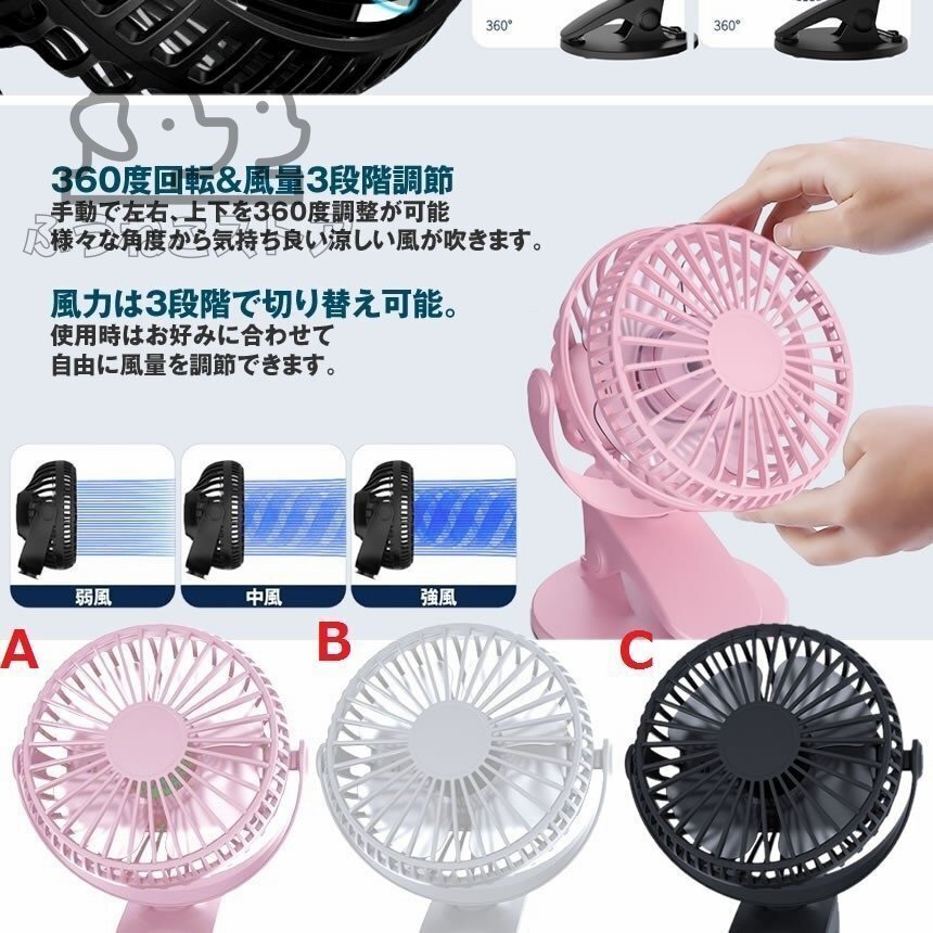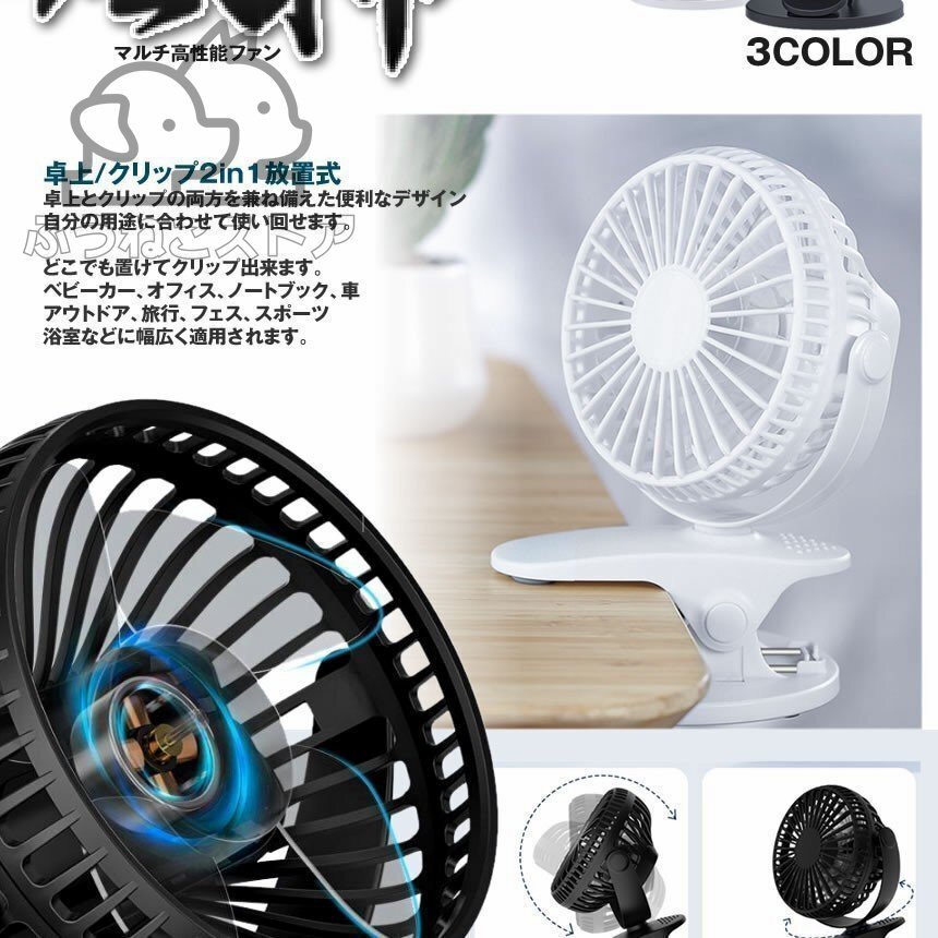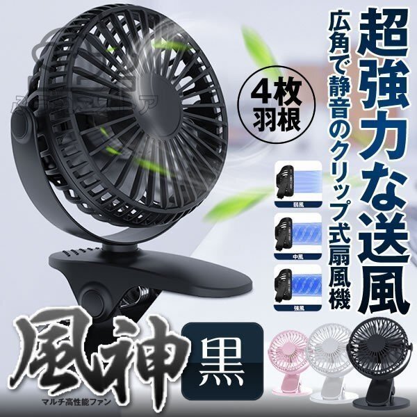 コム USB クリップ型扇風機 ブラック 小型ファン 充電 卓上 扇風機 携帯 ミニ 首振り 静音 720° 角度調整 2000mAh XH-09-BK YLH738