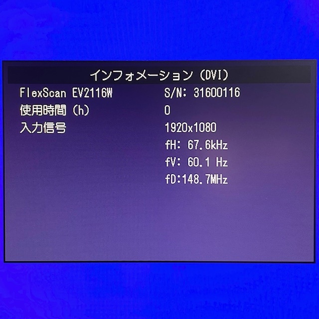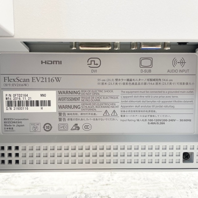 | 6102//【美品】EIZO FlexScan EV2116W 21.5インチ ワイド 液晶ディスプレイ フルHD/ ノングレア/TN/HDMI モニター 使用時間:0h | |||