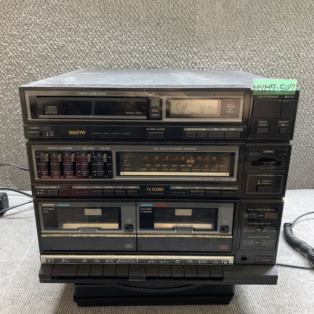 MYM7-507 激安 SANYO DCR-W50CD COMPACT DISC CASSETTE PLAYER 通電、電源オン、オフOK 中古現状品 ※3回再出品で処分