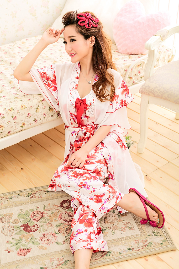 ☆セット内容 ガウン 帯 キャミソール パンツ4セット ☆カラー:赤色×白色 ☆中国製 ブランド名 bluesky |