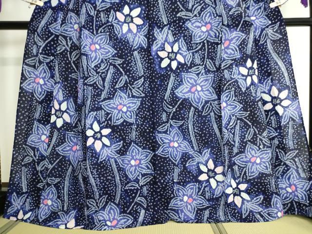 | 【綿・バチ衿】 状態は特に目立ったシミ汚れなどもなく大変良い状態です。 人気の高い“有松鳴海絞り”の浴衣でございます。 “鳴海絞り”ならではの表情を生み出す立体感と 淡いぼかしで息を吹き込まれ、 今にも動き出しそうな迫力を放っております。 夏祭りや花火大会、これから増えるイベントに連れ立って、 より夏をお楽しみ下さいませ。 大変上質な極上の逸品になります。 お安く出品致しますので、是非この機会にいかがでしょうか?