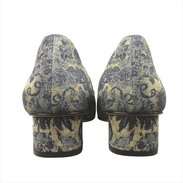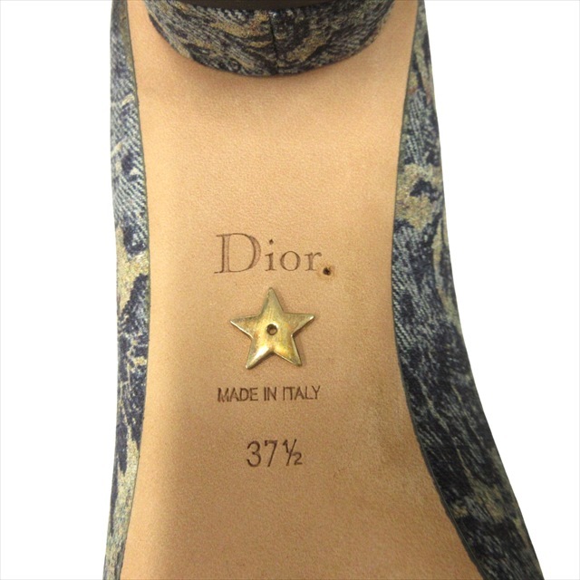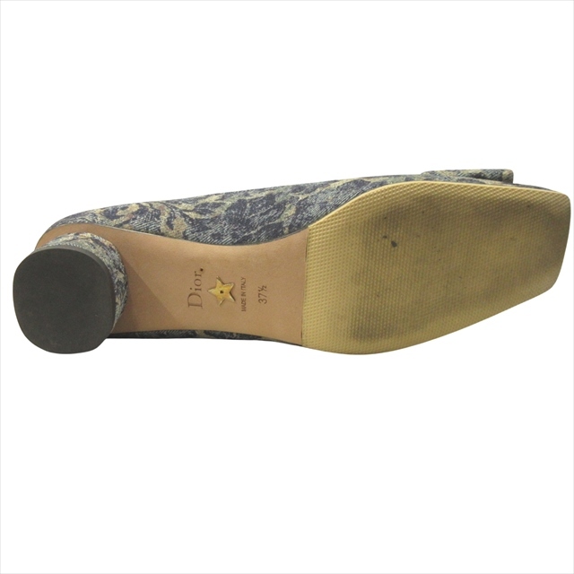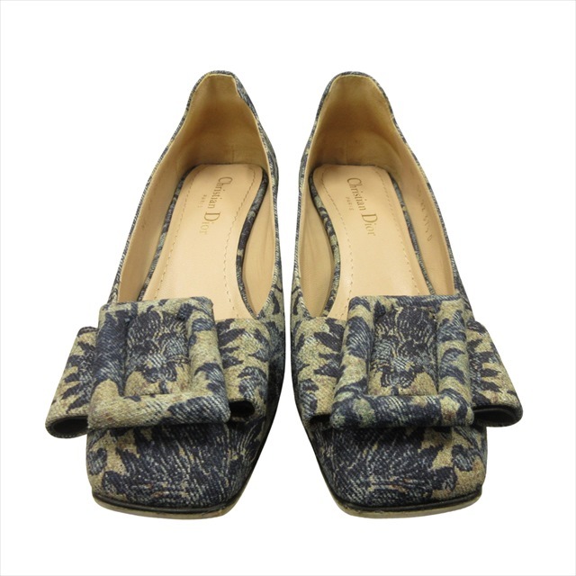 美品 クリスチャンディオール Christian Dior イディル パンプス IDYLLE シューズ デニム フラワー 花柄 37.5 24.5cm ネイビー レディース