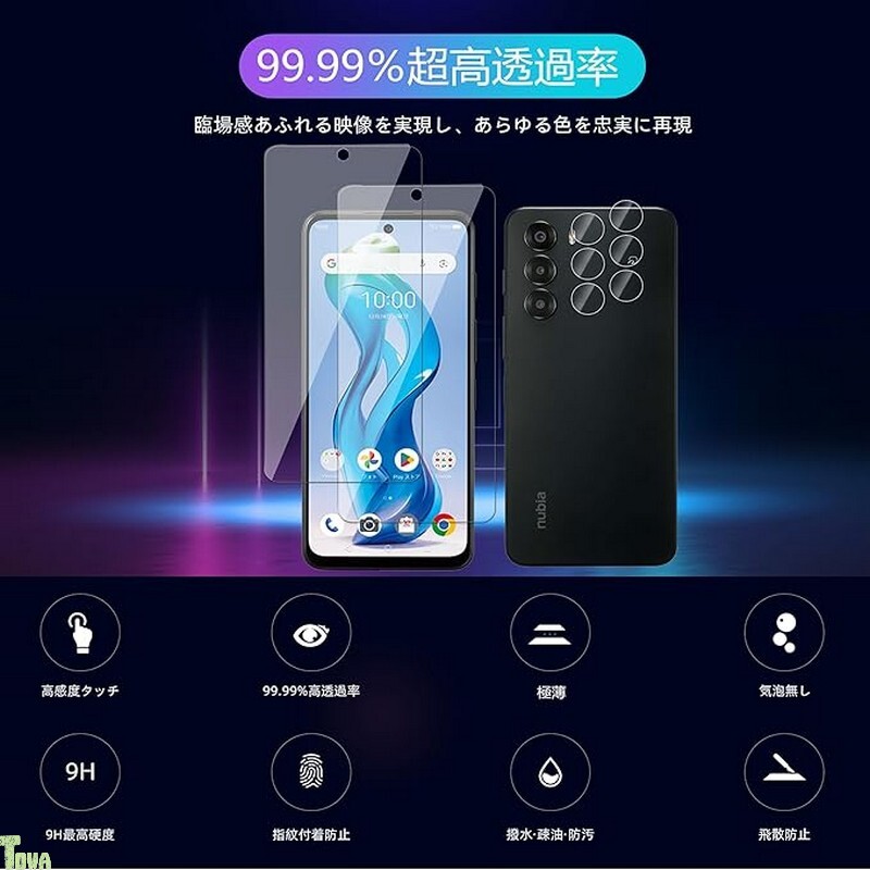 日本製 旭硝子 高品質 画面 / カメラ 各2セット 硬度9H 貼り付け簡単 ヌビア ZTE Nubia S 5G 保護 ガラス フィルム カバー 高透過率